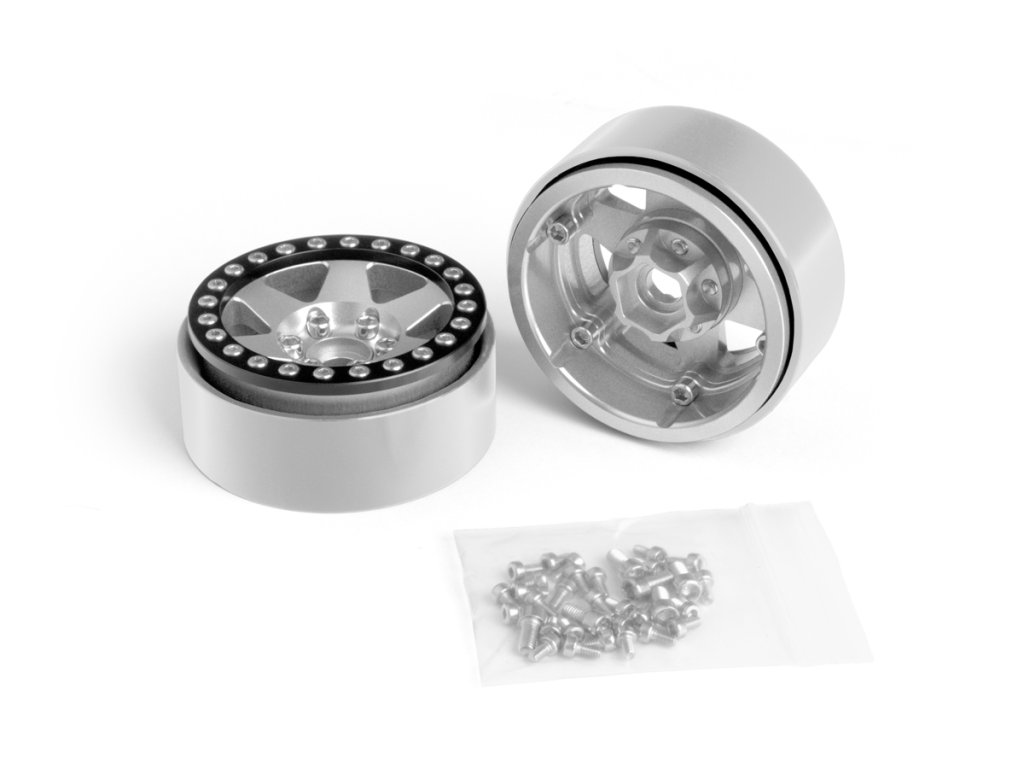 1.9'' Hliníkové beadlock disky šestipaprskové pro 1/10 crawler/expedice stříbrné - 2 ks