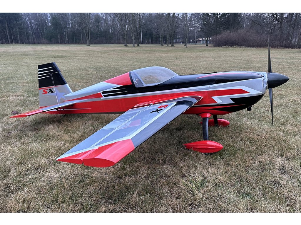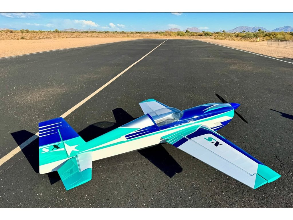 Sportovní polomaketa akrobatického letadla pro pohon benzínovým motorem 100-130 ccm pro zkušené piloty pro létání klasické přesné i extrémní 3D akrobacie.