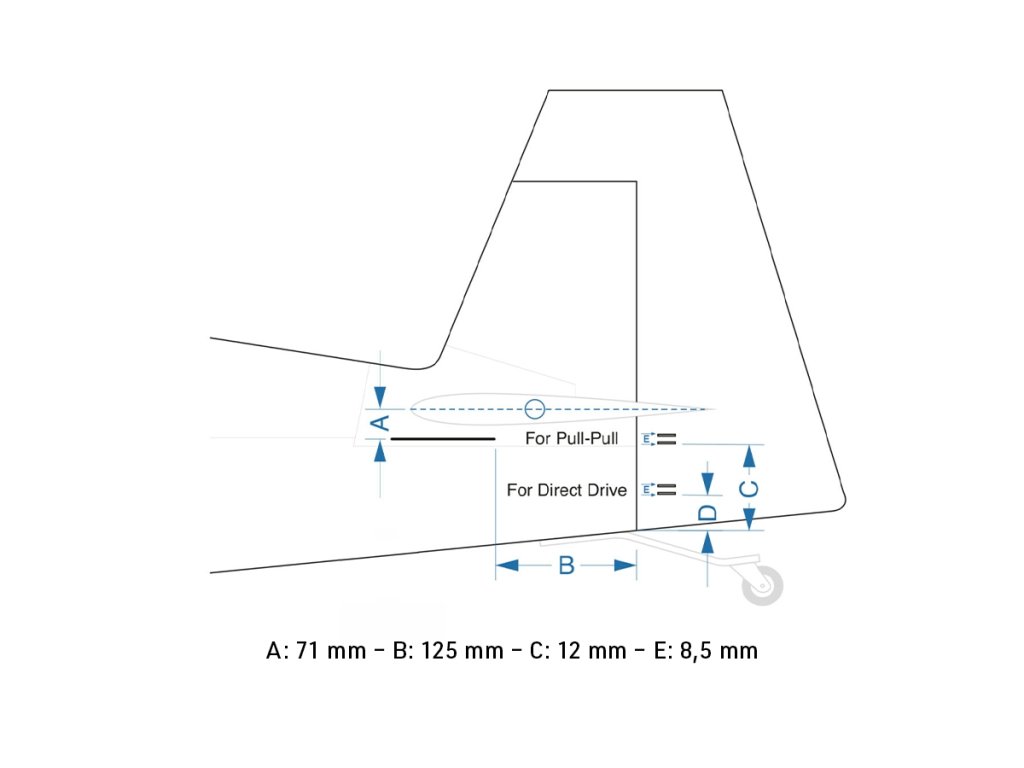 Servo směrovky je umístěno v trupu pod kabinou - Náhon SOP lanky (Pull-Pull).