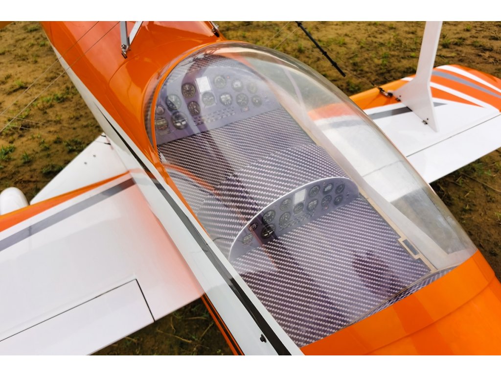 Uhlíkový podvozek,ostruha, trubka křídel, 4" vrtulový kuželSklolaminátové páky kormidel, kryty kol