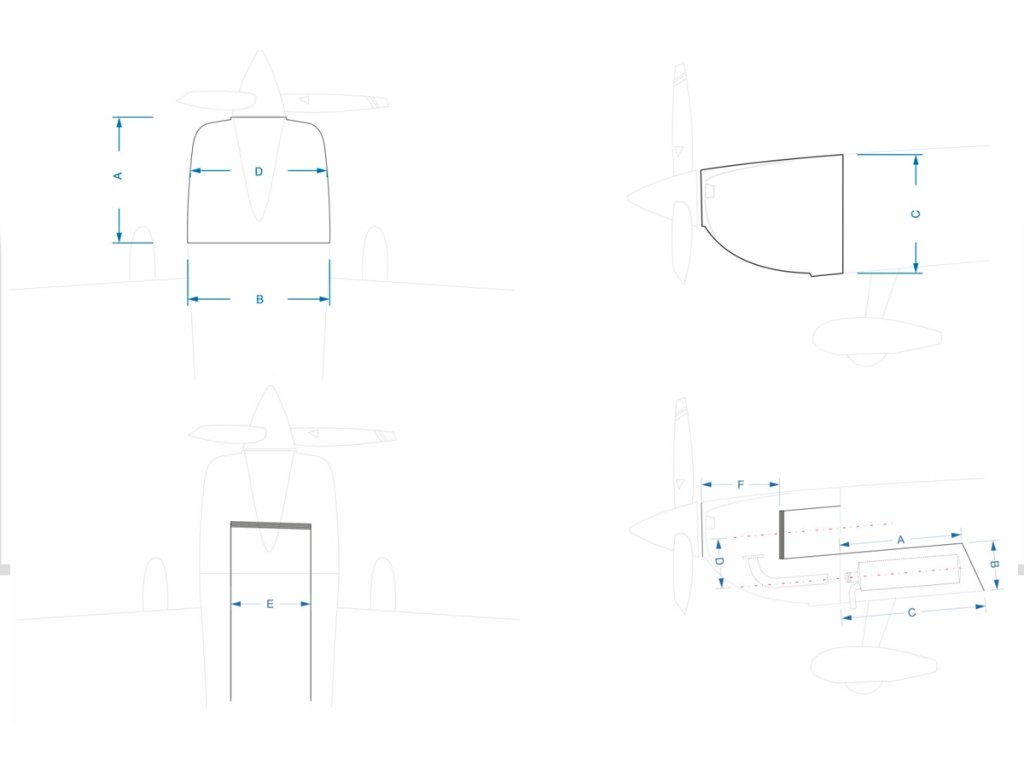 Uhlíkový podvozek,ostruha, trubka křídel, 4,5" vrtulový kuželSklolaminátové páky kormidel, kryty kol