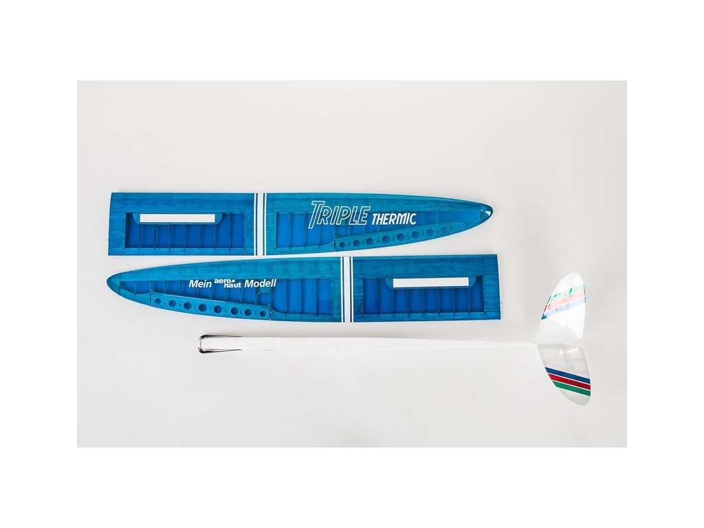 Tento zcela nový koncept kombinuje atraktivní trup s motýlkovou ocasní plochou (souprava obsahuje možnost E-power) s možností zvolit si typ křídla dle předpokládaného druhu letu. Každé křídlo se připojí k témuž trupu. Výkonné magnety drží křídla na svém místě a umožňují tak snadnou a rychlou změnu bez použití nástrojů.Triple Speed - délka křídla je 178 cm, rovné vzepětí křídel a dlouhá křidélka. Křídlová část má přímou spodní stranu, snadno se staví a je ideální i pro akrobacii a úctyhodnou maximální rychlost.Triple R.E.S. - délka křídla je 199 cm a výraznější tvar než "Triple thermic". Rádiem ovládaná pohyblivá ocasní plocha a křidélka, vše v souladu s požadavky R.E.S.Triple Thermic - délka křídla je 255 cm a je vybaveno křidélky a spoilery. Křídlová část je optimalizovaná pro termické stoupání a poskytuje vynikající letové vlastnosti a výkon.Elegantní trup kluzáku nabízí velmi dobré aerodynamické vlastnosti. Trup pro elektricky poháněný E-power má širší nos, který lze osadit 28mm-outrunnerem (například AXI 2212/20 V2 LONG) a nabízí prostor pro 3s-LiPo baterii s kapacitou 2500mAh. Obě verze mají magneticky odnímatelný kryt kabiny a odnímatelný kryt na spodní části trupu, který umožňuje přístup k ovládacím servům.Všechny tři verze modelu Triple jsou celodřevěného designu, přičemž kladou důraz na modelovou stavbu, která je u Aero-nautu dlouholetou tradici. Balsový trup s lehkým povrchem a dobře promyšlený koncept zajišťuje rychlý stavební proces s minimálním prostorem pro chybu. V-tail se skládá z přesně, laserem vyříznutých částí v podobě skládačky pro dosažení vynikajících výsledků. Křídla používají konvenční žebra a části a vyžadují pouze plochou stavební konstrukci. Náběhové hrany jsou sestavené komponenty a kombinují nízkou hmotnost s dobrou pevností.Dokonce i ti, kteří chtějí vyzkoušet stavbu modelů, uspějí s Triplem a mohou v krátkém časovém úseku vybudovat svůj vlastní větroň nebo větroň s elektrickým pohonem. Letové vlastnosti jsou vynikající a zajišťují, aby si zábavu užili i začátečníci nebo méně zkušení piloti. Tento kit obsahuje laserem vyřezané veškeré dřevěné součásti nutné k sestavení modelu, smrkové díly, bowdeny, ovládací táhla a balení spojovacích malých dílů. Podrobné stavební pokyny s grafikou a textem "krok za krokem" vám zodpoví všechny vaše otázky.Upozornění