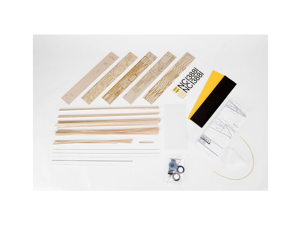 Stavebnice obsahuje: balsové laserem vyřezávané díly, balsové nosníky, vakuově lisované díly (kryt motoru, kryt kabiny...), čirou plastovou fólii na "zasklení" kabiny, ocelovou strunu na podvozek a další drobné díly, lehká pěnová kola, barevný potahový papír, aršík samolepek, stavební plán.