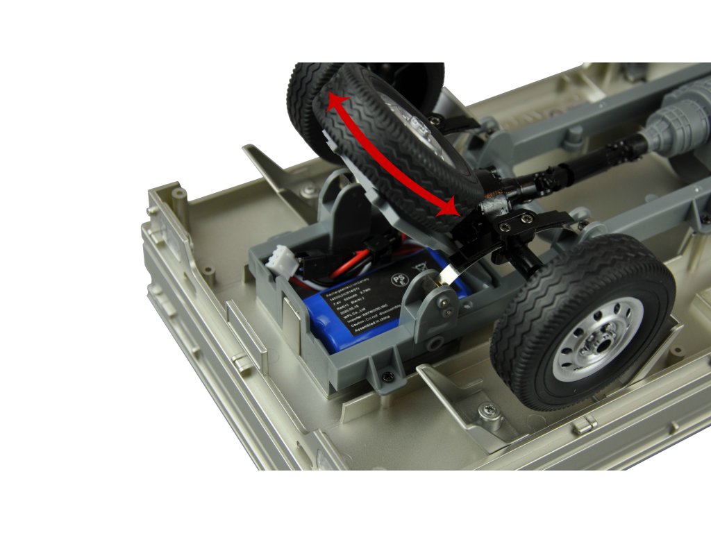 Díky dvoustupňové převodovce ovládané z vysílače, můžete jezdit pomalu asijskými tržišti ale pak zrychlit tempo až na 25 km/h. Model má i LED osvětlení pro noční závozy zboží. Převodovka je chráněna proti stříkající vodě. Model je tedy plně vhodný pro venkovní použití a díky gumovým pneumatikám poskytuje spoustu potěšení z jízdy na jakémkoliv povrchu. Díky plně proporcionálnímu řízení s proměnným úhlem maximálního zatočení, který lze také nastavit pomocí ovladače, má model extrémně malý poloměr otáčení, a je velmi obratný.