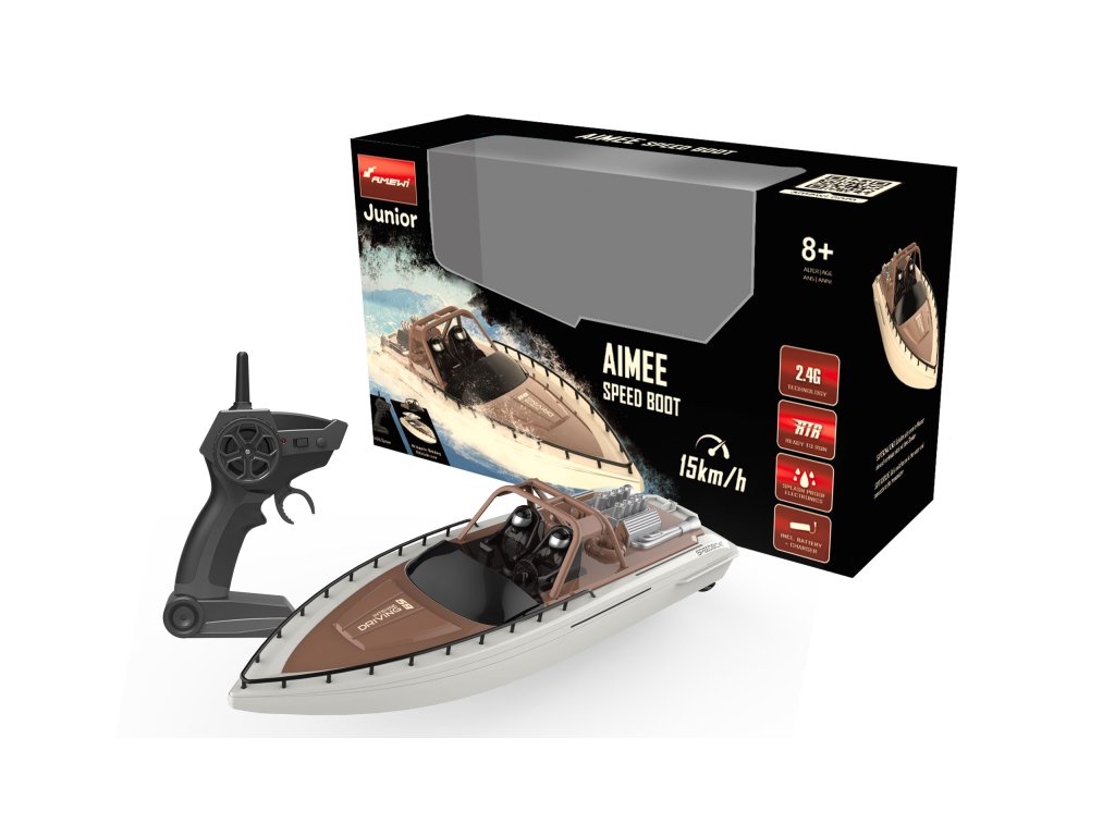 AIMEE SPEED BOOT RC rychlostní člun o celkové délce 380mm, který díky svému aerodynamickému designu ve stylu závodního člunu zajišťuje skvělou pozici ve vodě a je tak ideální pro hobby kapitány od 8 let. Klasická výletní jachta o celkové délce 380 mm, stylová s pevnou střechou, zadním kokpitem a koupací plošinou pro krásný vzhled. Ideální pro hobby kapitány ve věku 8 a více let. Barevné provedení je harmonické a nadčasové v krémově bílé a hnědé. Jachta má celkovou délku 380mm, což je optimální pro menší vody. Ideální pro hobby kapitány ve věku 8 a více let. Cruise Yacht je vybavena dvěma 340 kartáčovými motory a Li-Ion baterií 7,4V/ 800 mAh, jede rychlostí až 15 km/h. V závislosti na vašem stylu jízdy je možné přibližně 15 minut nepřerušované zábavy z jízdy. Kromě plného výkonu vpřed můžete při manévrování také snadno zařadit zpátečku. Elektronika uvnitř je chráněna dvěma způsoby díky dvojitému krytu, takže i rozbouřené moře může této základní lodi jen stěží ublížit. Dodatečnou bezpečnost poskytuje funkce proti zranění na suchu, která umožňuje připojení člunu k vysílači a spuštění pouze ve vodě. K dispozici jako verze RTR (Ready-to-Run), všechny komponenty potřebné k provozu jsou již součástí dodávky, kromě standardních AA baterií do dálkového ovládání. Díky modernímu 2,4GHz dálkovému ovládání je také možné bez problémů používat několik modelů na vodě. Verze RTR (Ready-to-Run): Připravena k okamžitému spuštění