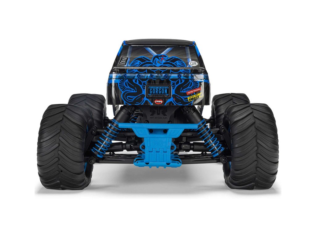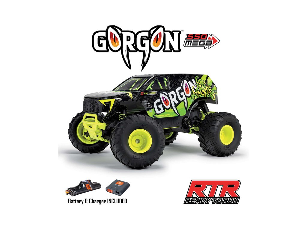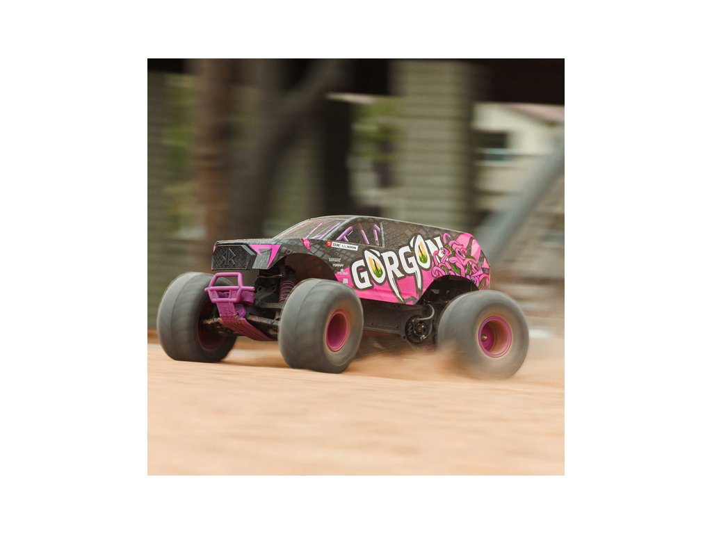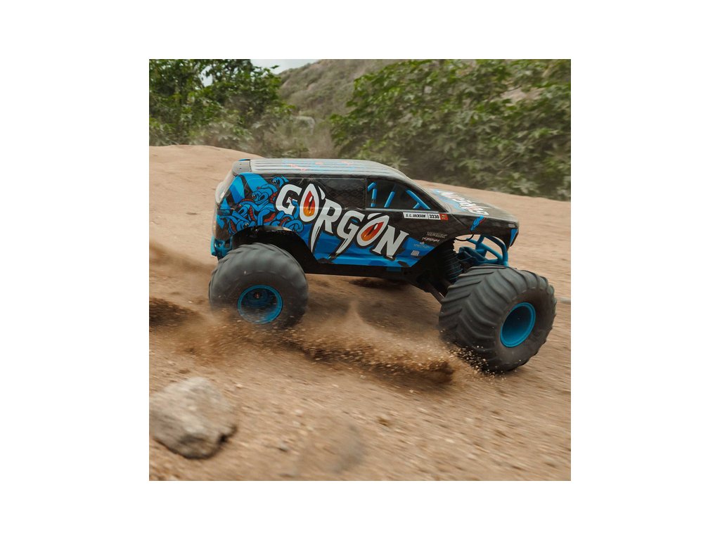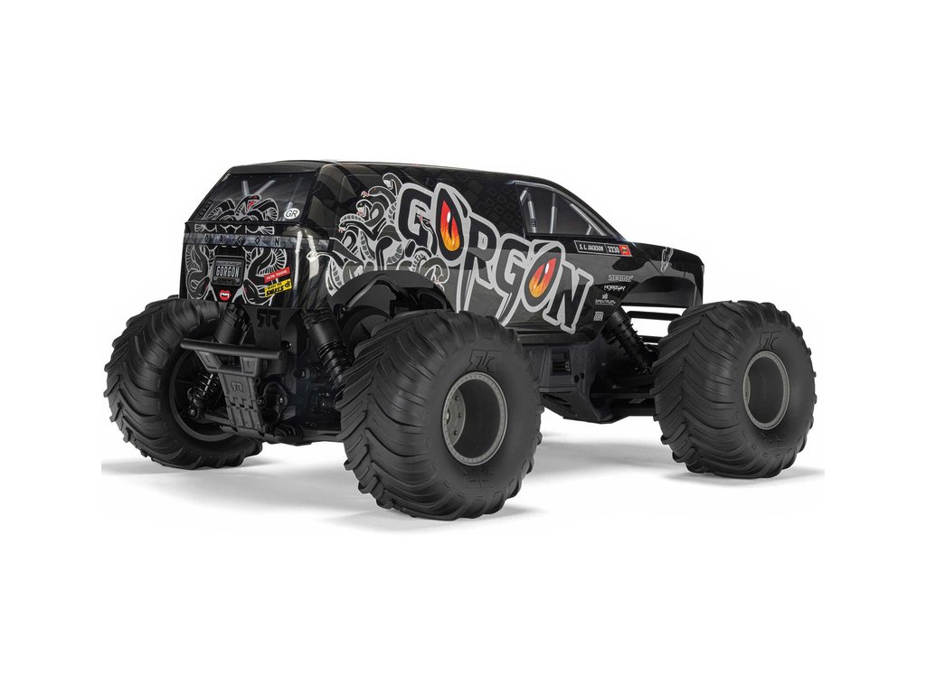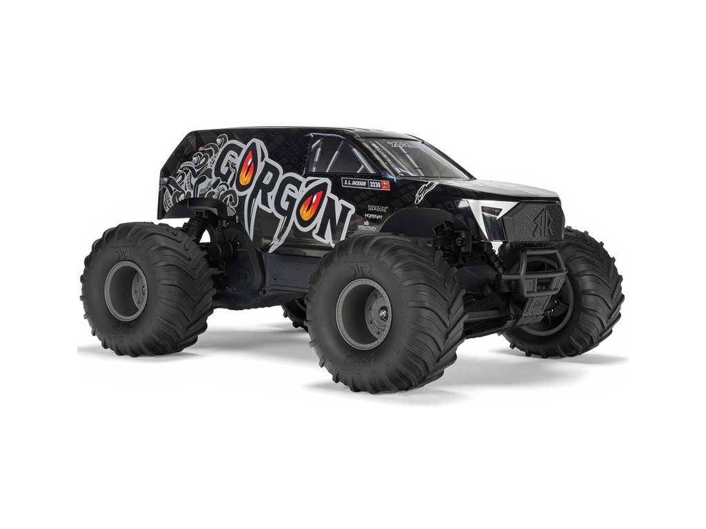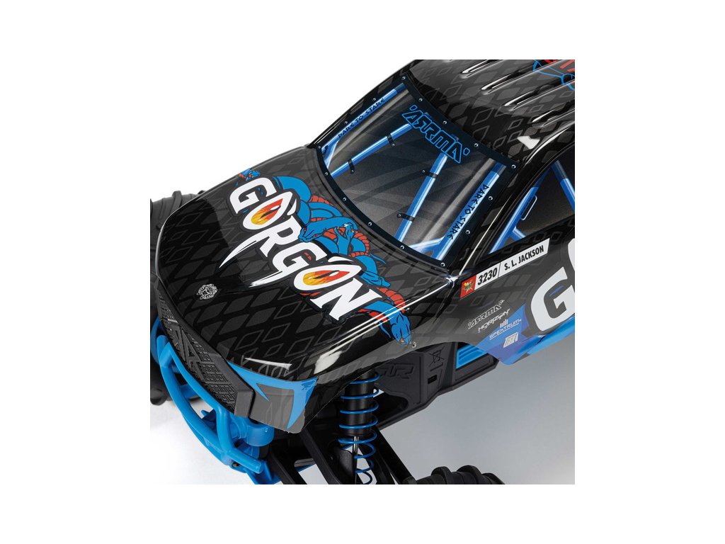 Ihned po vybalení přitáhne Gorgon vaši pozornost díky svému originálnímu vzhledu. Karoserie je z výroby dokončena ve velmi atraktivním moderním stylu a je barevně sladěna s jednotlivými díly šasi, jako jsou pružiny, přihrádka na baterii, kluzné desky a nárazníky. Osvědčená technologie ARRMA má díky kompozitnímu šasi vysokou odolnost. Nezávislé zavěšení, olejové tlumiče a nastavitelná světlá výška zajišťují komfortní jízdu. Pro nezastavitelnou trakci přenáší 2WD převodovka výkon ze stejnosměrného motoru MEGA 550 do masivních pneumatik dBoots ® Chevron o rozměru 130mm, nalepených na nylonových discích 57mm. Použité kovové převody jsou dostatečně odolné i pro případný upgrade na střídavý pohon.