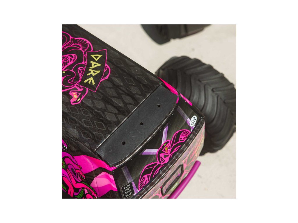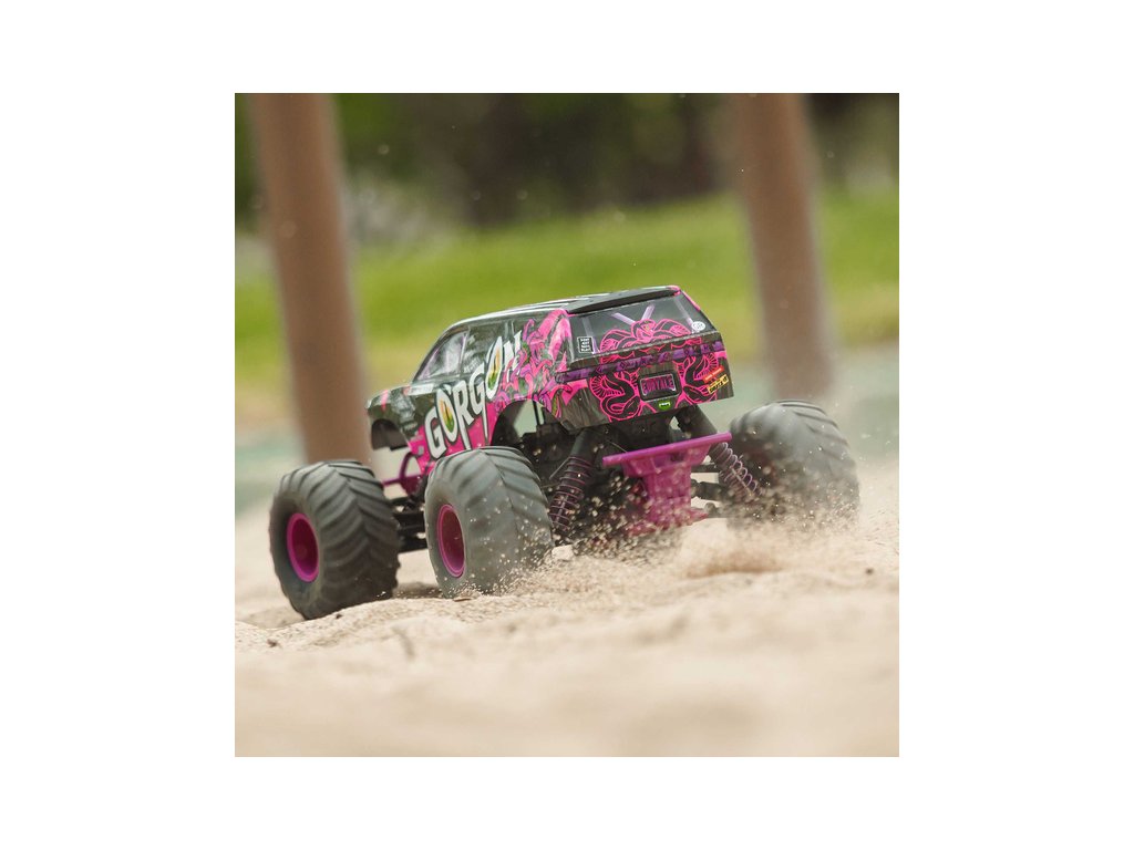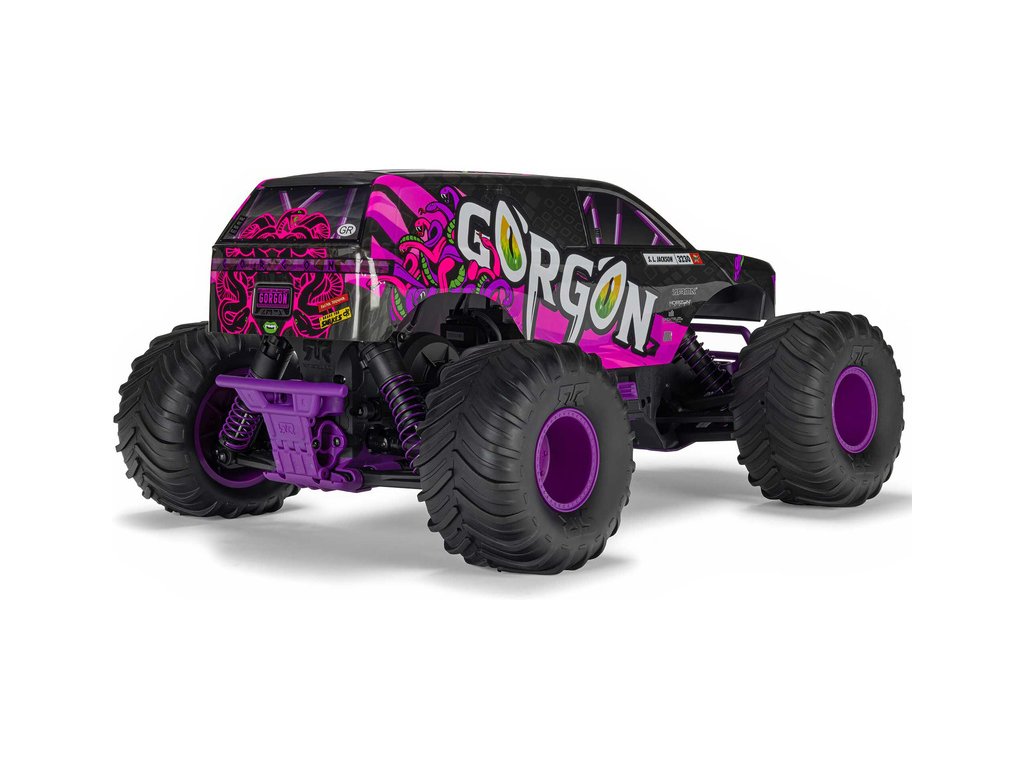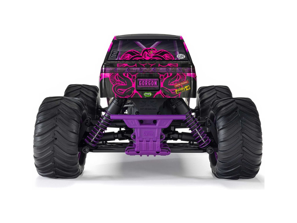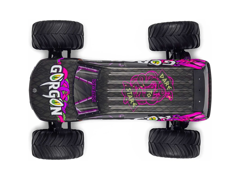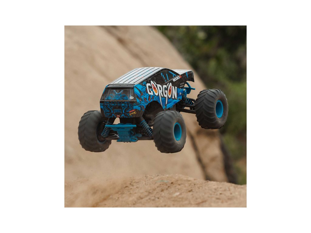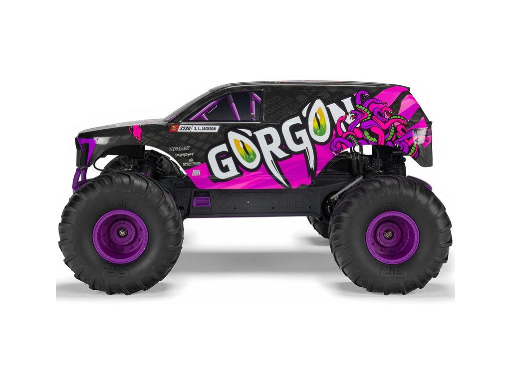Ihned po vybalení přitáhne Gorgon vaši pozornost díky svému originálnímu vzhledu. Karoserie je z výroby dokončena ve velmi atraktivním moderním stylu a je barevně sladěna s jednotlivými díly šasi, jako jsou pružiny, přihrádka na baterii, kluzné desky a nárazníky. Osvědčená technologie ARRMA má díky kompozitnímu šasi vysokou odolnost. Nezávislé zavěšení, olejové tlumiče a nastavitelná světlá výška zajišťují komfortní jízdu. Pro nezastavitelnou trakci přenáší 2WD převodovka výkon ze stejnosměrného motoru MEGA 550 do masivních pneumatik dBoots ® Chevron o rozměru 130mm, nalepených na nylonových discích 57mm. Použité kovové převody jsou dostatečně odolné i pro případný upgrade na střídavý pohon.