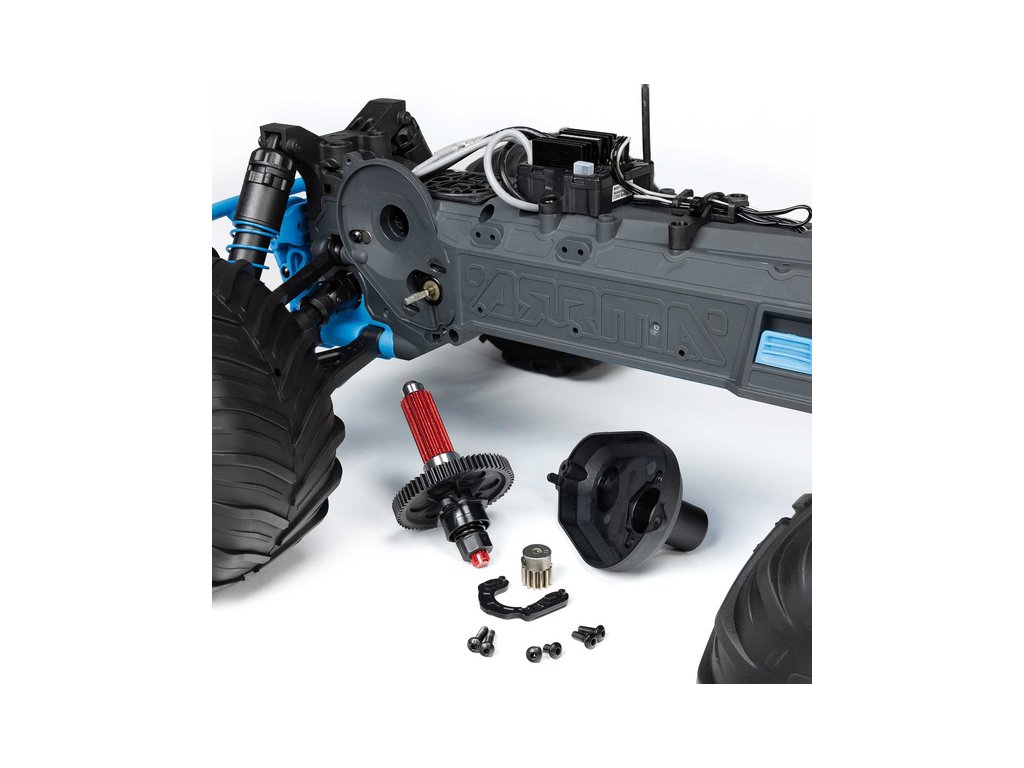 Převodovka modelu ARRMA GORGON MT, zajišťuje přenos výkonu ze stejnosměrného motoru MEGA 550 14T na zadní kola. Převodovka je dostatečně dimenzovaná, aby odolala i střídavému pohonu.