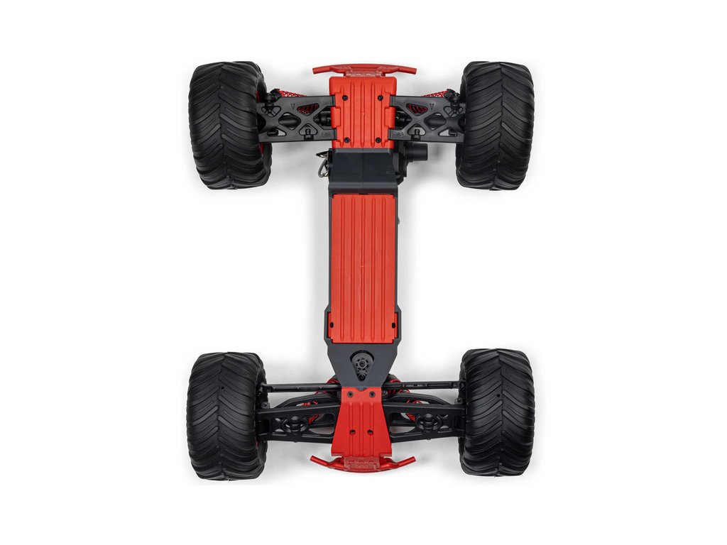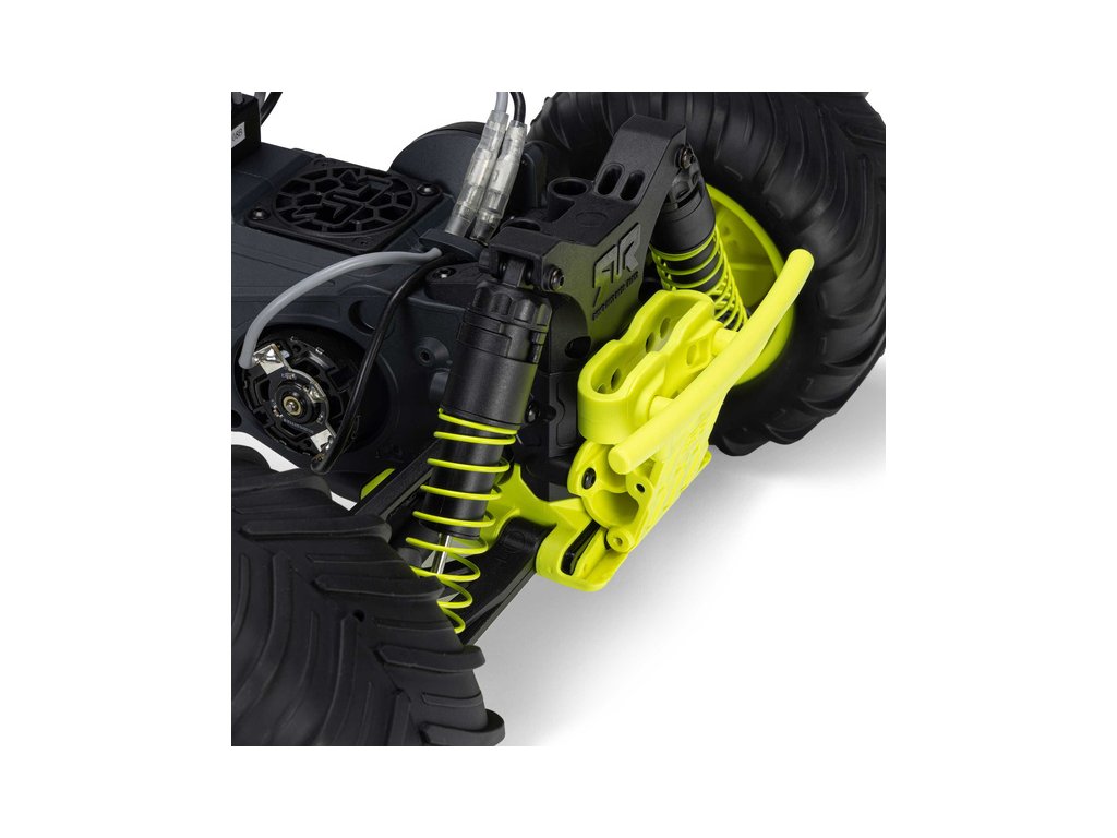 Kompozitní šasi je vyrobeno s odolností ARRMA. GORGON MT má účelnou konstrukci s pevným úzkým šasi, nezávislým zavěšením a olejem plněnými tlumiči pro hladké absorbování nerovností. Přihrádka pro baterii ze spodní strany šasi umožňuje výměnu akumulátoru, aniž byste museli sundávat karoserii.