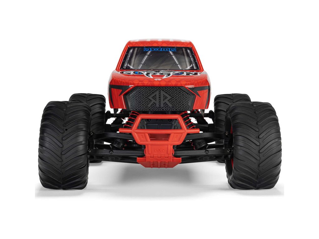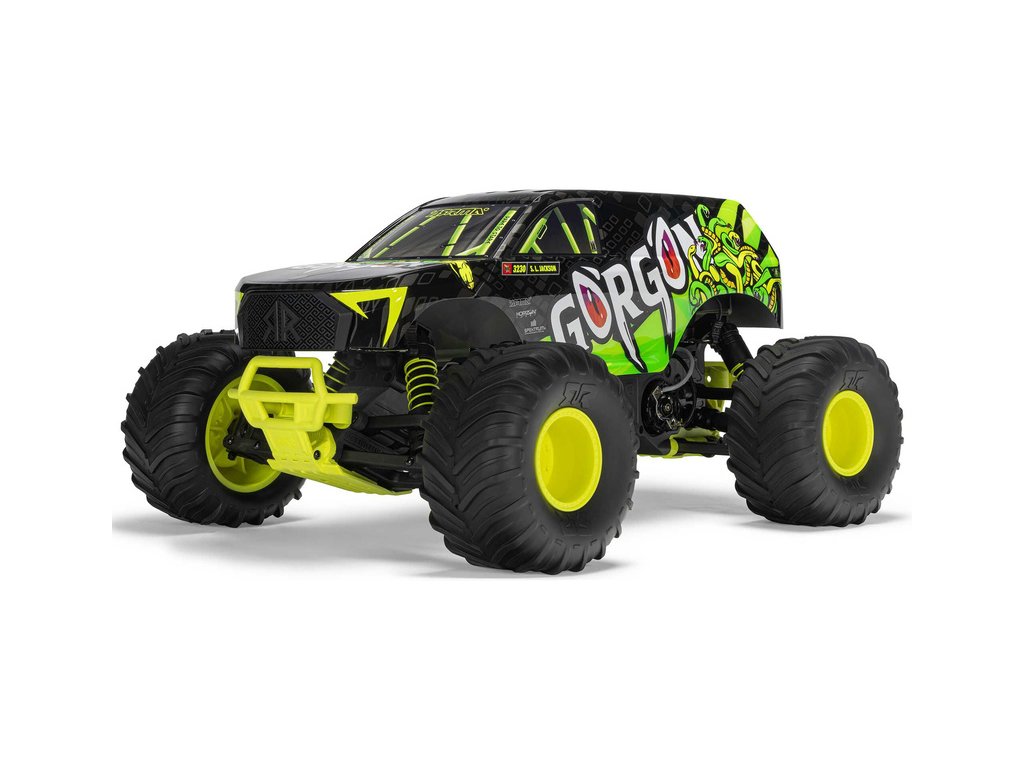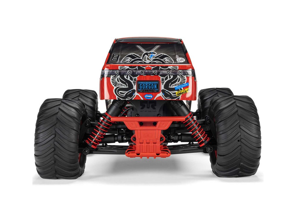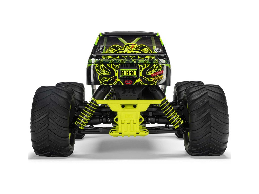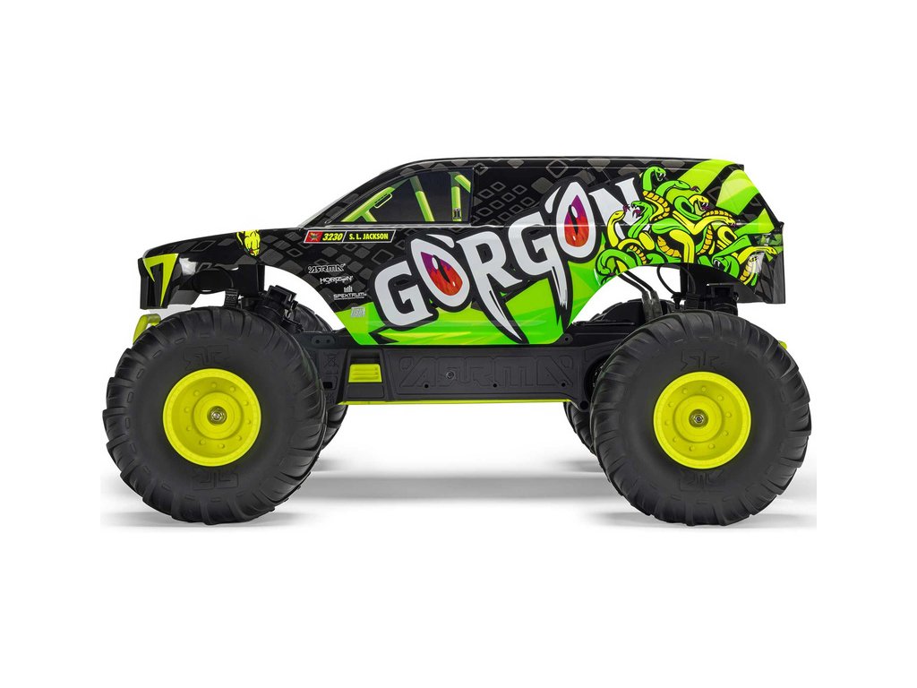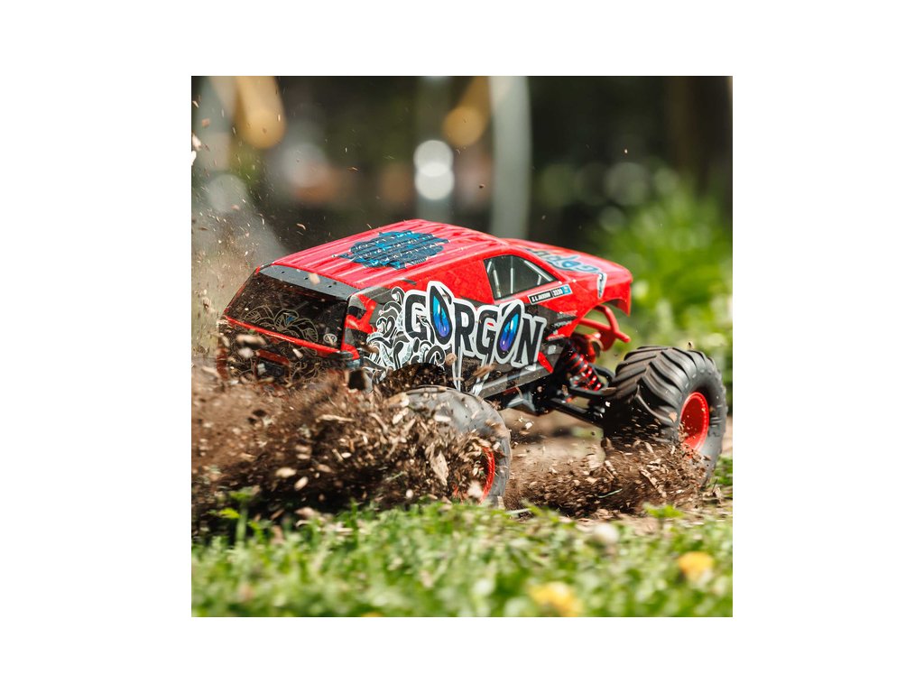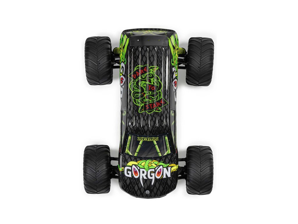 Ihned po vybalení přitáhne Gorgon vaši pozornost díky svému originálnímu vzhledu. Karoserie je z výroby dokončena ve velmi atraktivním moderním stylu a je barevně sladěna s jednotlivými díly šasi, jako jsou pružiny, přihrádka na baterii, kluzné desky a nárazníky. Osvědčená technologie ARRMA má díky kompozitnímu šasi vysokou odolnost. Nezávislé zavěšení, olejové tlumiče a nastavitelná světlá výška zajišťují komfortní jízdu. Pro nezastavitelnou trakci přenáší 2WD převodovka výkon ze stejnosměrného motoru MEGA 550 do masivních pneumatik dBoots ® Chevron o rozměru 130mm, nalepených na nylonových discích 57mm. Použité kovové převody jsou dostatečně odolné i pro případný upgrade na střídavý pohon.