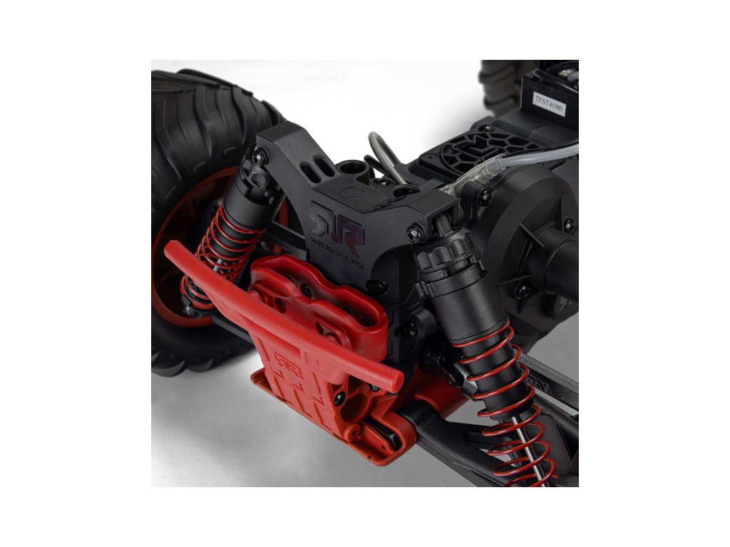 Kompozitní šasi je vyrobeno s odolností ARRMA. GORGON MT má účelnou konstrukci s pevným úzkým šasi, nezávislým zavěšením a olejem plněnými tlumiči pro hladké absorbování nerovností. Přihrádka pro baterii ze spodní strany šasi umožňuje výměnu akumulátoru, aniž byste museli sundávat karoserii.