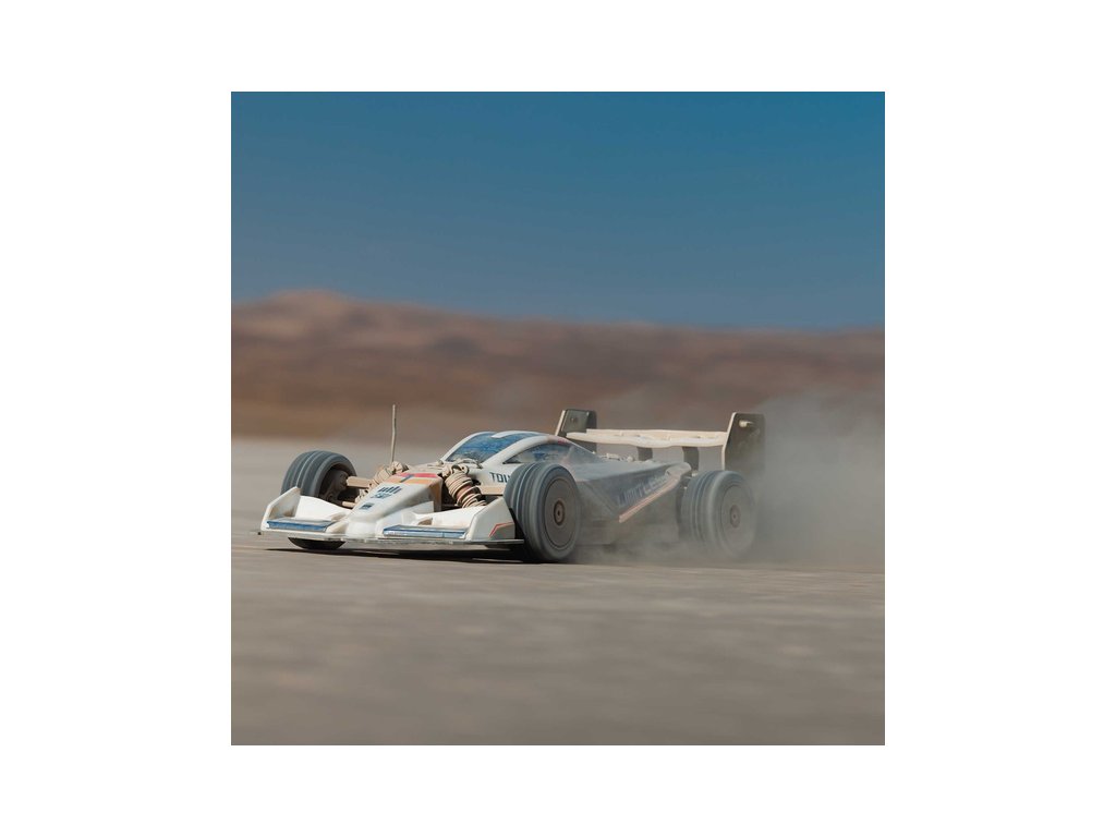 Šasi modelu tvoří podvozkový 3 mm plát z eloxovaného hliníku a středová výztuha pro tuhost konstrukce. Výkon se rozděluje na všechna kola pomocí celokovových nápravových diferenciálů EXB a centrálního diferenciálu. Nezávislé zavěšení kol obsahuje velkoobjemové olejové tlumiče, které jsou stejně jako věže tlumičů z eloxovaného hliníku. Předpětí pružin lze snadno nastavit pomocí matice. Pneumatiky dBoots Hoons poskytují výbornou přilnavost ať už jedete po asfaltu, nízké trávě, nebo rovné šotolině. Karoserie je speciálně tvarovaná pro nízký odpor vzduchu. Přední spoiler a velký zadní difuzor spolupracují, aby vytvořily optimální přítlak pro výborné jízdní vlastnosti. To vše vám pomůže zažít novou definici výkonu a rychlosti.