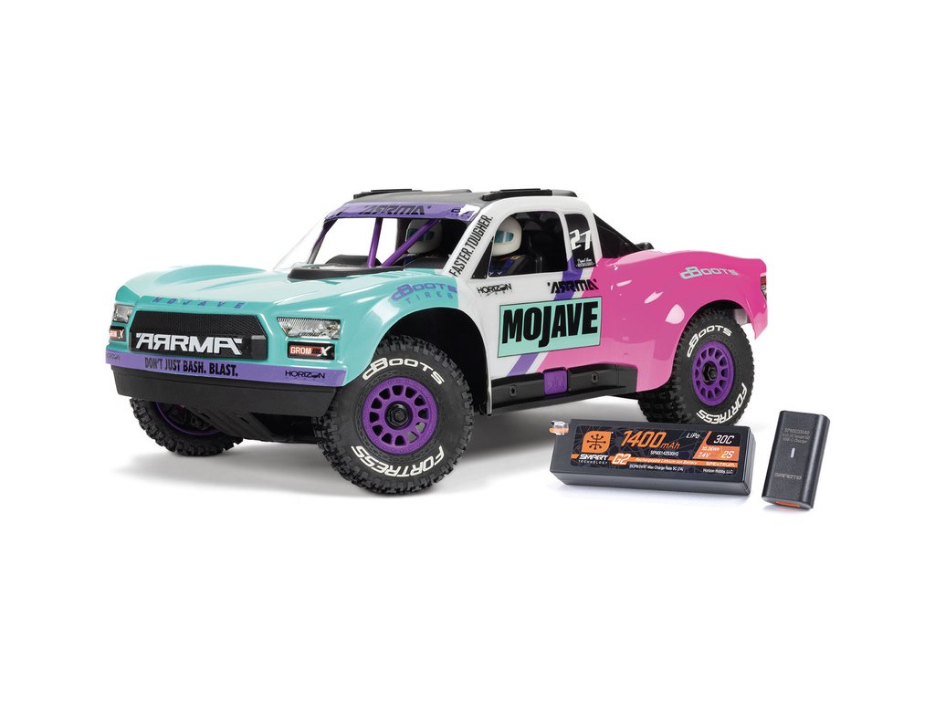 Arrma Mojave Grom 223S BLX je výkonnostně všestranný model a může postupně růst s vašimi řidičskými schopnostmi. Pro začátek můžete model provozovat na obsažený 2S LiPo akumulátor a omezit výkon plynu 50%. Později můžete zvýšit plyn na 75% a 100% a dokonce do modelu připojit samostatně prodejný 3S LiPo akumulátor a dosáhnout rychlosti až 80 km/h.