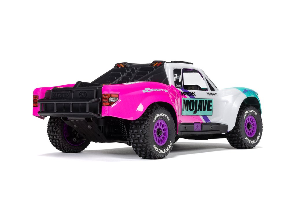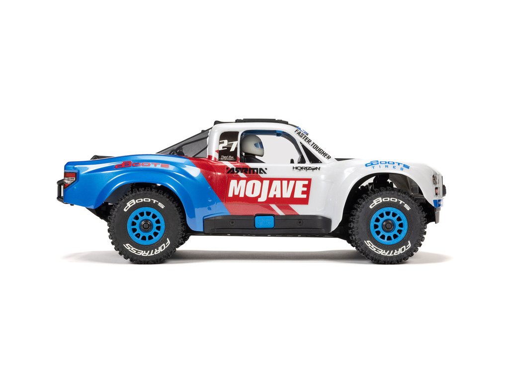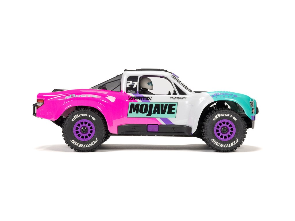 Arrma Mojave Grom 223S BLX je výkonnostně všestranný model a může postupně růst s vašimi řidičskými schopnostmi. Pro začátek můžete model provozovat na obsažený 2S LiPo akumulátor a omezit výkon plynu 50%. Později můžete zvýšit plyn na 75% a 100% a dokonce do modelu připojit samostatně prodejný 3S LiPo akumulátor a dosáhnout rychlosti až 80 km/h.