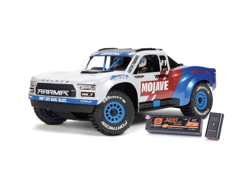 S RC modelem auta Arrma Mojave Grom 223S BLX si díky menší velikosti v měřítku 1:16 a výkonnému střídavému motoru užijete spoustu zábavy doma i venku a to za dostupnou cenu. Odolnost, výkon BLX a precizní maketové zpracování jsou vlastní značce Arrma a i tohoto modelu jsou zachovány všechny důležité vlastnosti, včetně náhonu 4x4 a vysoké rychlosti až 56 km/h. Továrně jsou instalovaný upgrady, aby model s přehledem zvládnul výkon nově instalovaného střídavého motoru. RC auto je určeno pro děti, dospělé, začátečníky i zkušené jezdce, kteří získají nadupaný hotový model připravený k provozu. Součástí balení je akumulátor 2S LiPo a USB nabíječka, takže můžete ihned vyrazit na první jízdu.