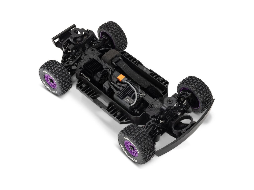 Díky tomu, že střídavý pohon je dimenzován na 2-3S LiPo, můžete ze začátku jezdit s obsaženým 2S LiPo akumulátorem a jakmile se vaše řidičské schopnosti zdokonalí, můžete do modelu zapojit i 3S LiPo akumulátor (prodává se samostatně) a zvýšit výkon a rychlost až na extrémních 80 km/h. Proto, aby model bez problému zvládnul i takovýto nárůst výkonu, jsou již továrně instalovány upgrady jako diferenciály s plně kovovými převody, ocelové poloosy, hliníkové olejové tlumiče a hliníkové spojovačky řízení.