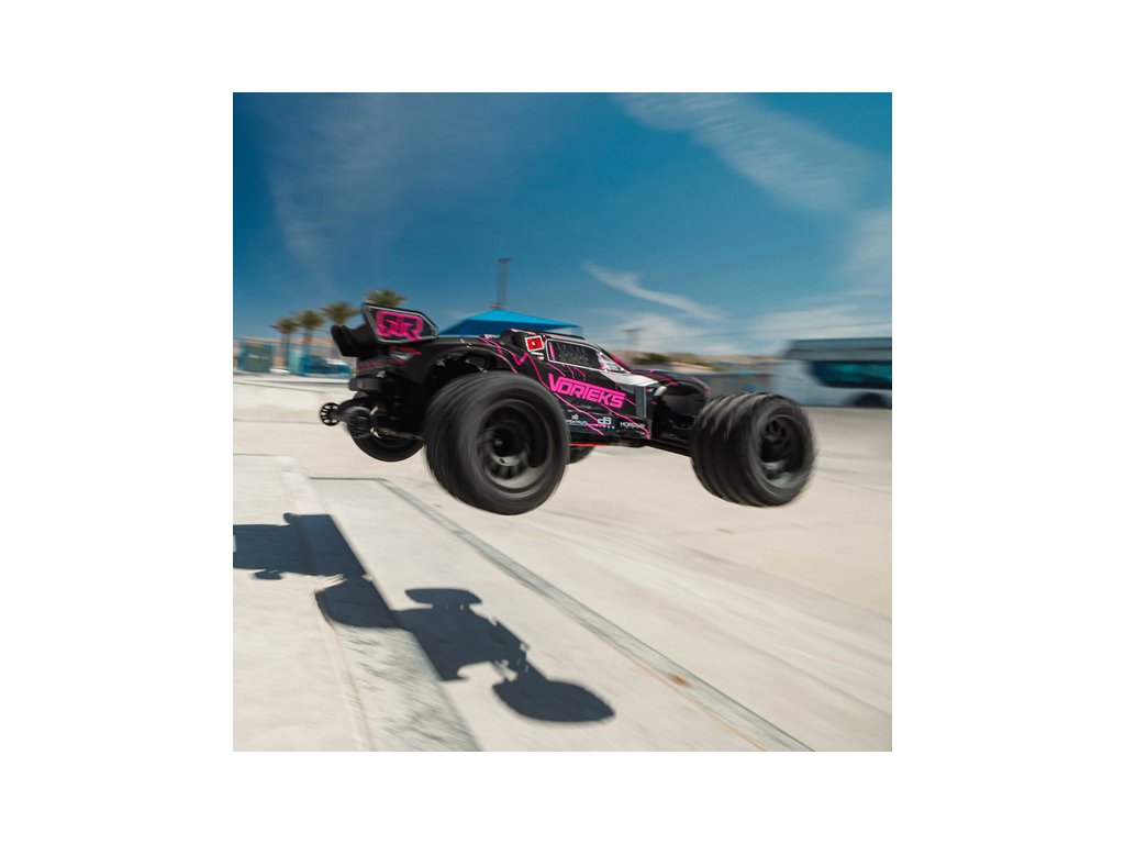 Arrma Vorteks je výkonnostně všestranný model a může postupně růst s vašimi řidičskými schopnostmi. Pro začátek můžete model provozovat na 2S LiPo akumulátor a omezit výkon plynu na 50%. Později můžete zvýšit plyn na 75% a 100% a dokonce do modelu připojit 3S LiPo akumulátor a dosáhnout rychlosti až 80 km/h.