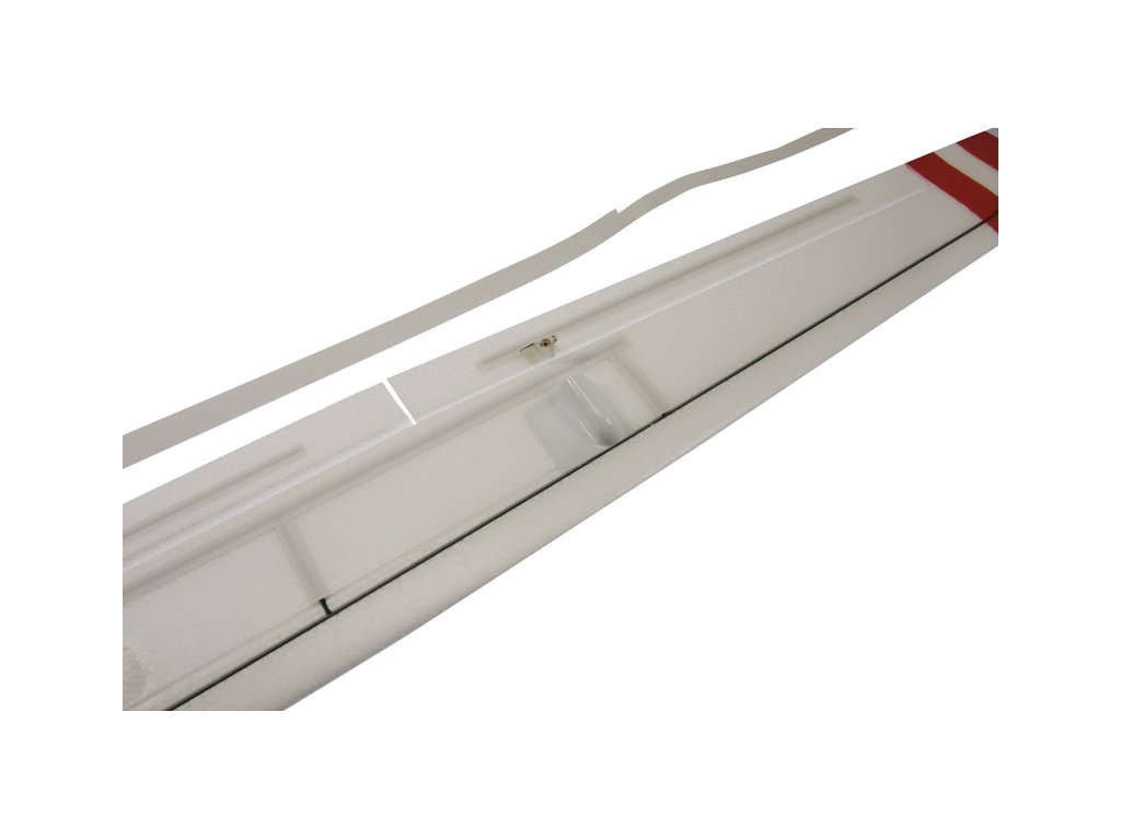 Serva křidélek a klapek se vloží do připravených kapes v křídle a překryjí krytem, protáhnou se prodlužovací kabely a připojí serva. Pak už jen stačí nainstalovat táhla na páky kormidel.