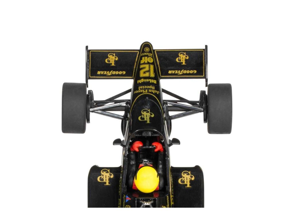 Autíčko pro autodráhu. Velikost: 1:32, 14 cmVzdejte hold jednomu z nejlepších jezdců v historii Formule 1 s vozem Lotus 98T, který řídil Ayrton Senna. Tento vůz Scalextric zachycuje naprostou rychlost a technickou brilantnost, kterou Senna na trati předvedl. Díky výraznému černo-zlatému lakování, které představuje ikonický sponzorský speciál Johna Playera, je Lotus 98T mistrovským dílem designu a techniky.