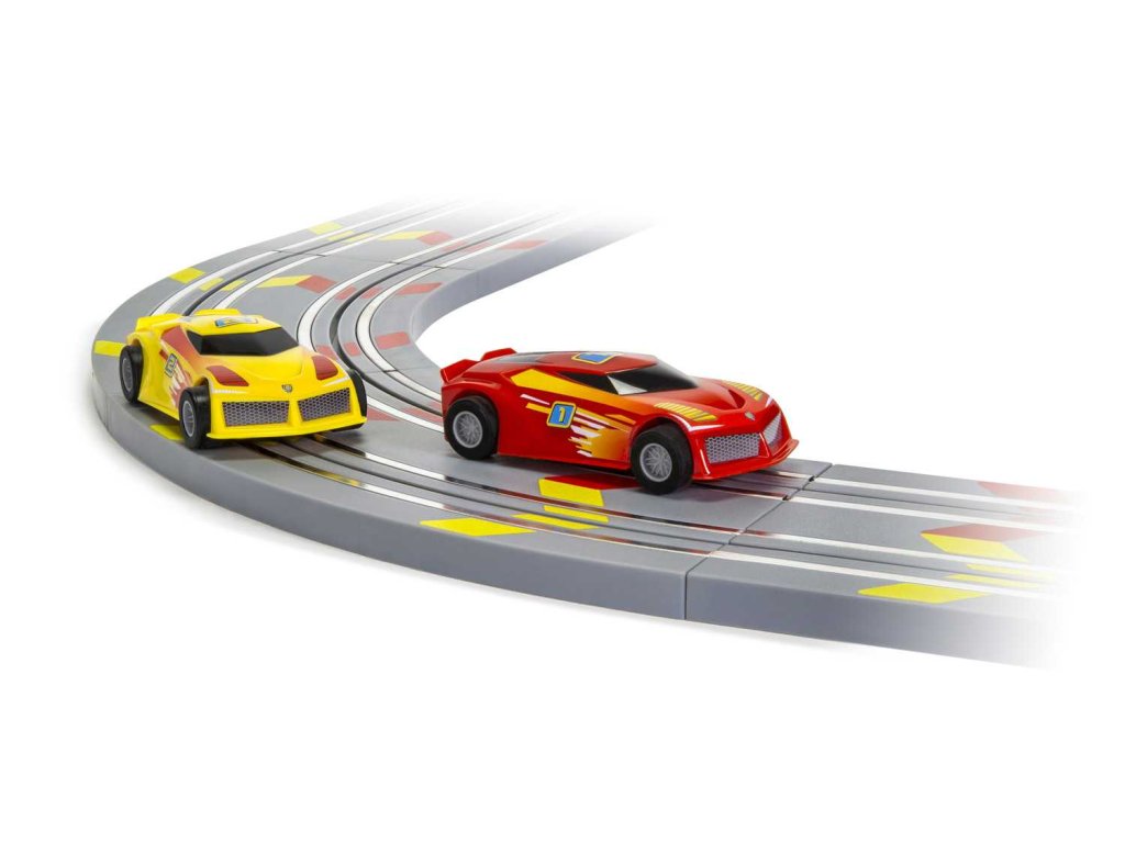 Obě závodní auta a ovladače s nastavitelným výkonem jsou barevně odlišené. Jejich červená a žlutá barva navíc odpovídá i označení jednotlivých drah na trati. Naše technologie Magnatraction pomáhá udržet autíčka na trati a nastavitelné ovladače umožňují přizpůsobit rychlost závodění zkušenostem malých závodníků. Autodráha My First Scalextric je plně kompatibilní s naší řadou autodráh a autíček Micro Scalextric. Díky tomu můžete svou dráhu neustále rozšiřovat a přidávat nová autíčka – nekonečné možnosti máte na dosah ruky!