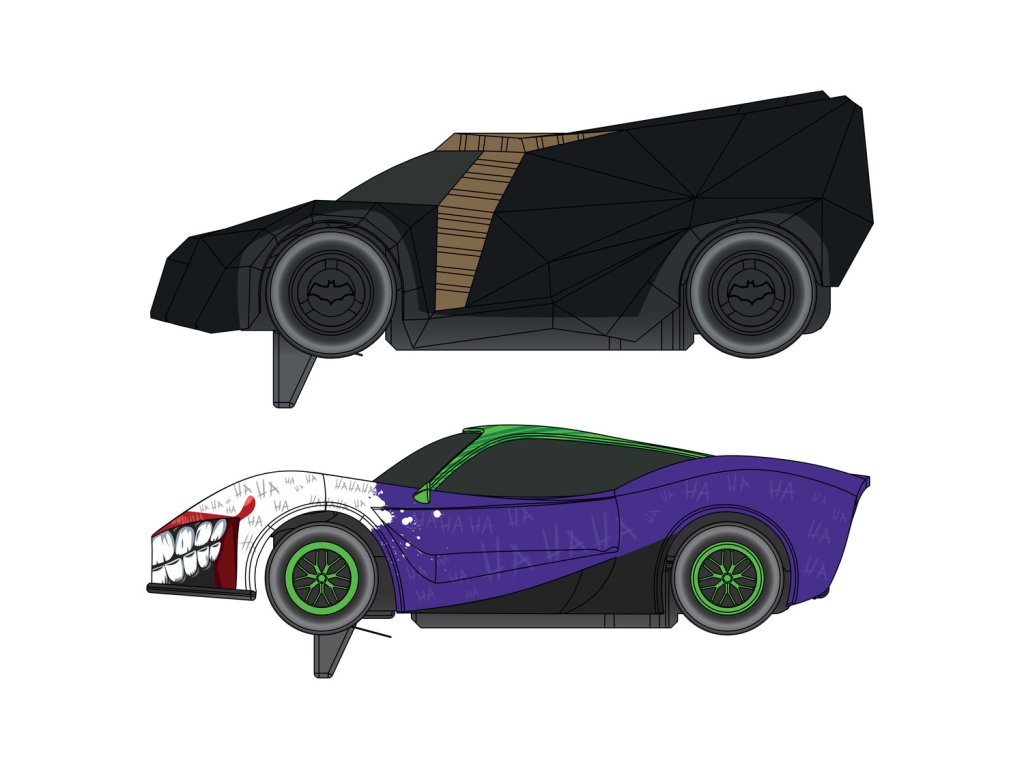 Batman versus Joker - souboj netopýřího muže a klaunského prince zločinu! Tato Micro Scalextric sada obsahuje dva závodní vozy v dokonalém designu Batmana a Jokera, závodní dráhu v délce 4,08 m s možností 9 variant rozložení trati. Tato závodní sada je napájena pomocí baterie. JUSTICE LEAGUE a všechny související postavy a prvky ©& TM DC Comics. WB SHIELD: ©& TM WBEI. (s ..)Rozměry dráhy: 81 x 120 cm
