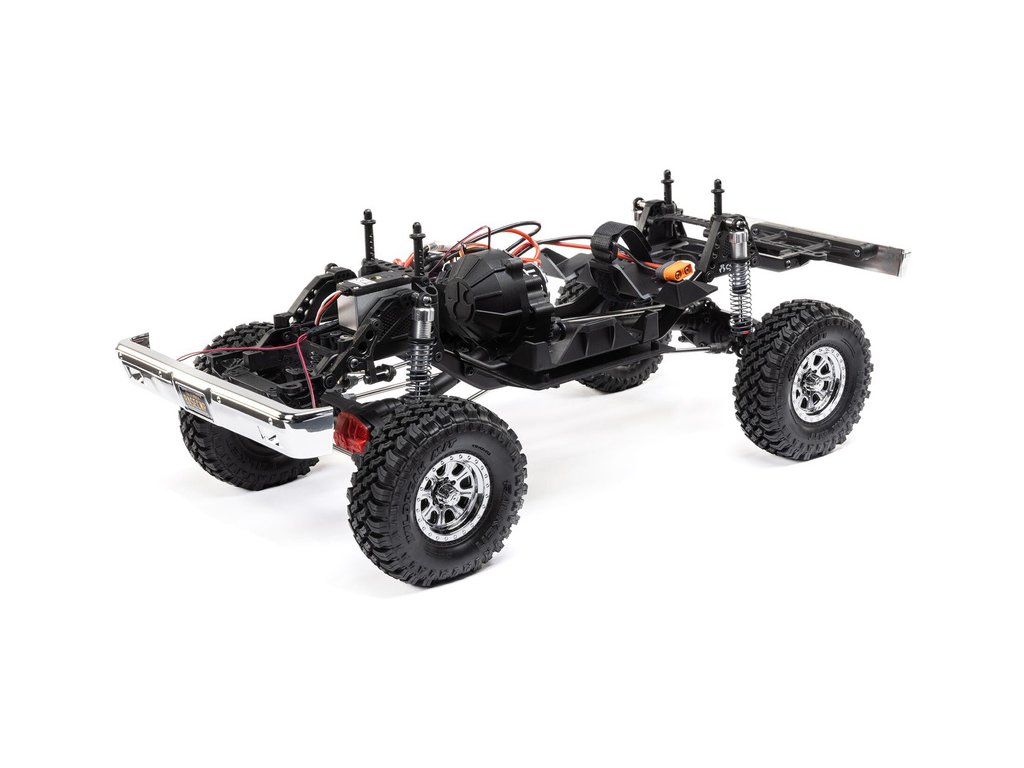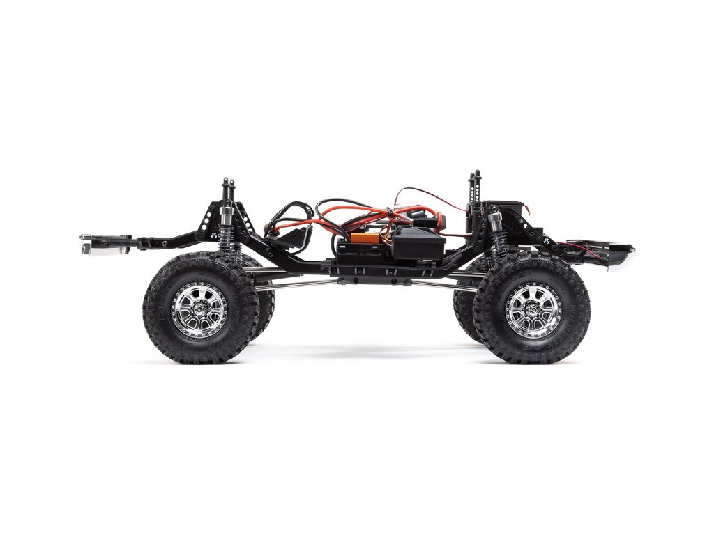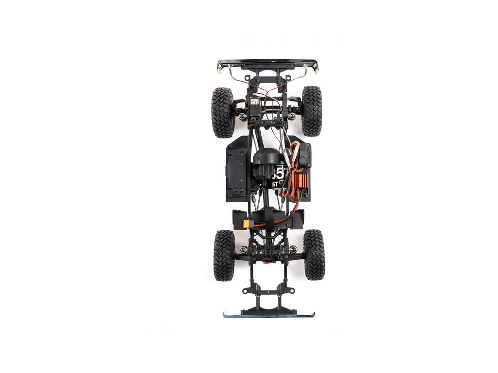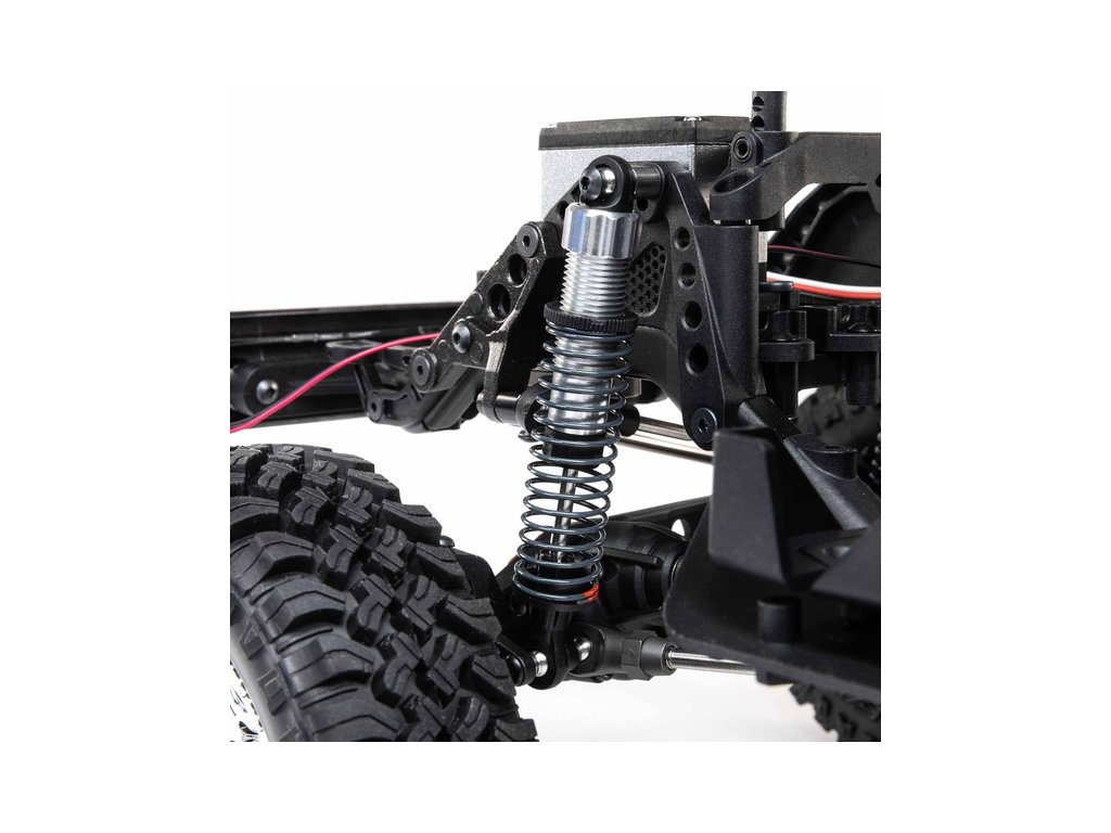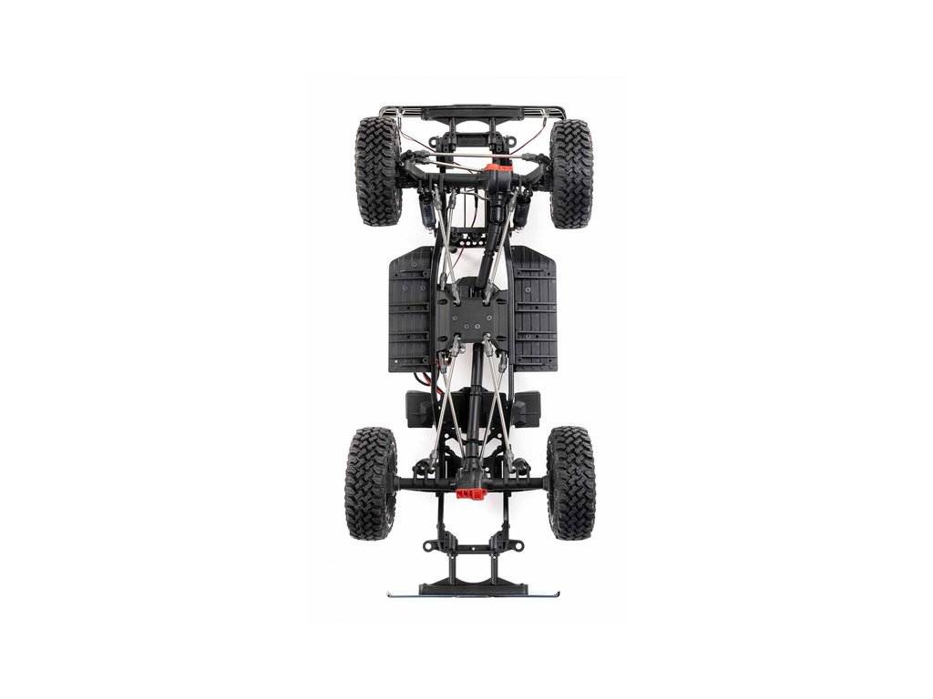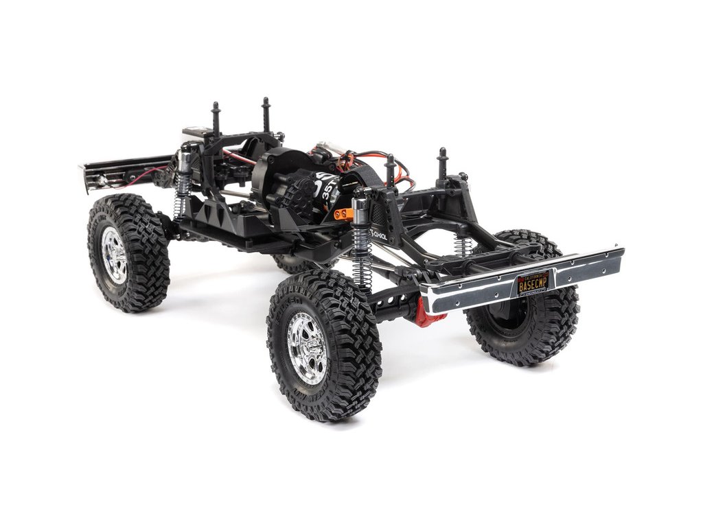 Osvědčený podvozek SCX10 III v odlehčené verzi Base Camp je vybaven ocelovými profily ve tvaru C, které minimalizují prohýbání a kroucení šasi. Portálové nápravy AR45 dodávají vysokou světlou výšku a průchodnost terénem. Jedno-rychlostní převodovka LCXU má kuličková ložiska a kovové ozubení pro vysokou pevnost a odolnost. Výborné odpružení zajišťují hliníkové tlumiče naplněné olejem, pro autentické jízdní vlastnosti.