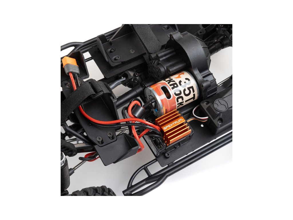 Pohonný systém tvoří nový stejnosměrný motor Axial Slickrock 35T a voděodolný* regulátor Spektrum 40A. S tímto jednoduchým a spolehlivým kombem strávíte více času na stezkách a méně času prováděním údržby.