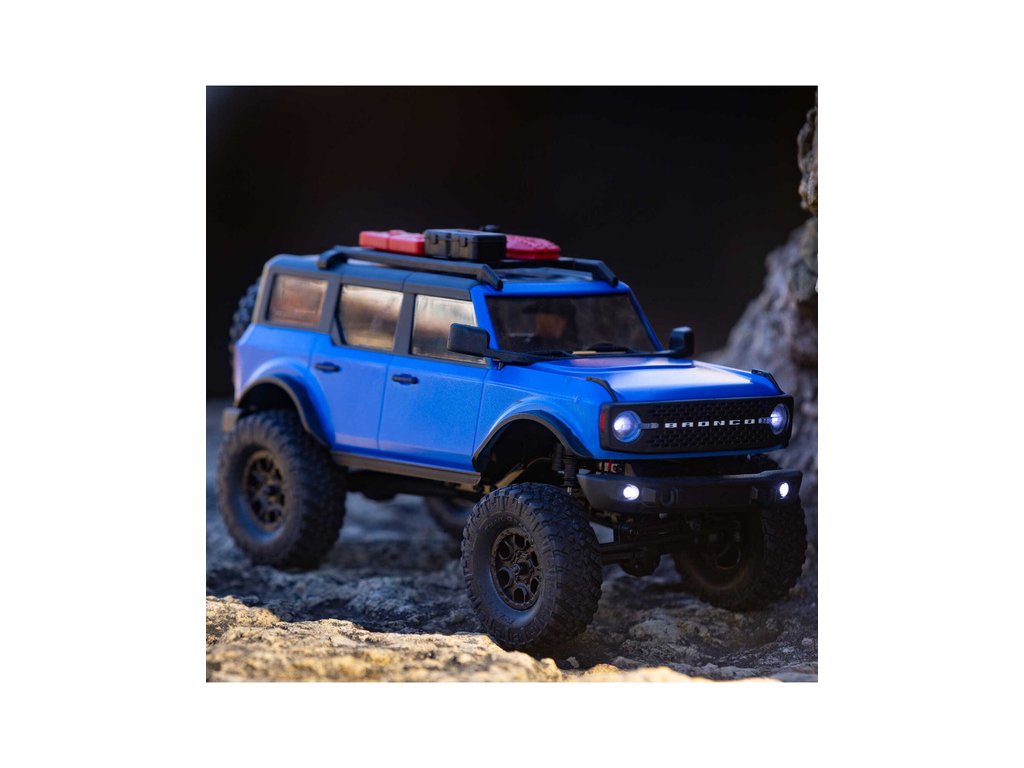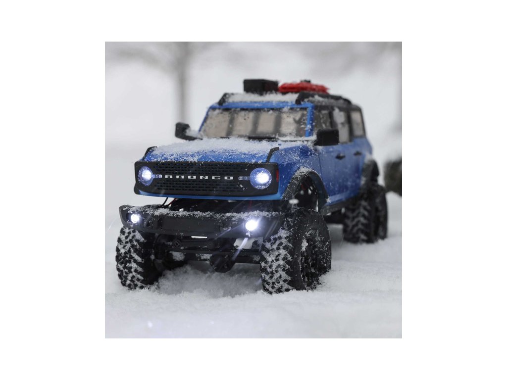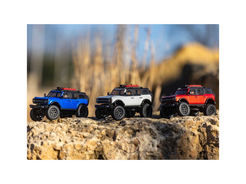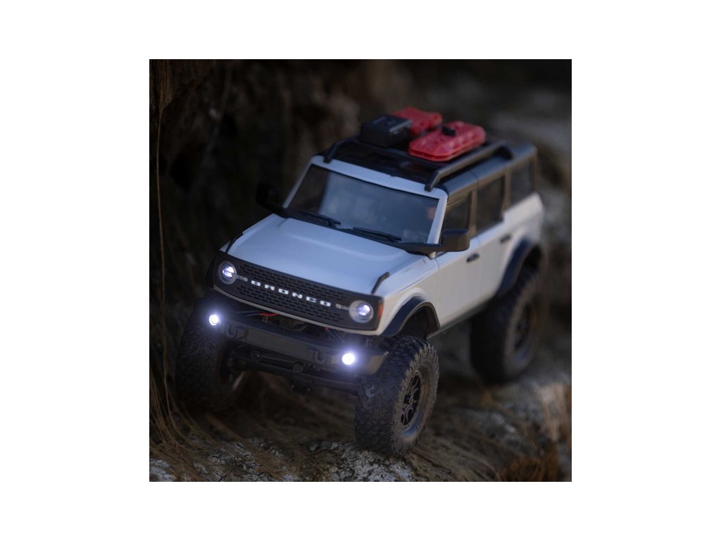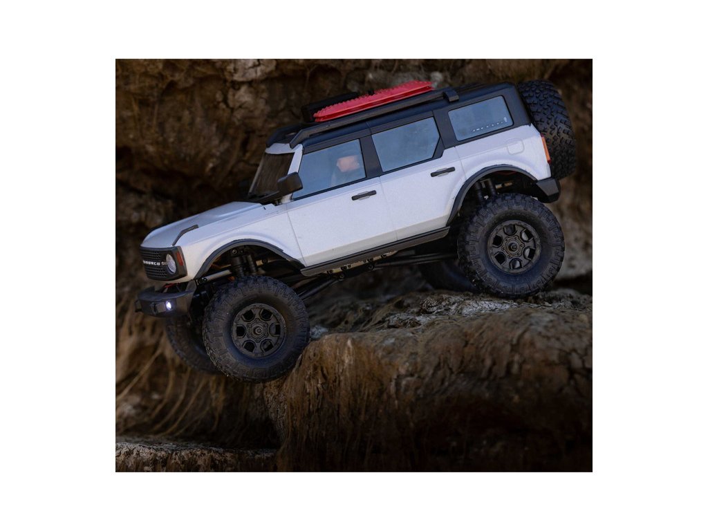 RC model auta na dálkové ovládání v měřítku 1:24 Axial SCX24 s licencovanou karosérií Ford Bronco 2021 a licencovaných pneumatikách Nitto Trail Grappler s disky Factory Ford Wildtrak. Model s pohonem 4x4 je sestaven a připraven k jízdě, vše potřebné je v balení. RC souprava 2,4GHz, motor Dynamite® 88T, LiPol baterie Dynamite 350mAh 7.4V s USB nabíječem. Díky použití moderního LiPo akumulátoru je doba jízdy přes 40 minut!