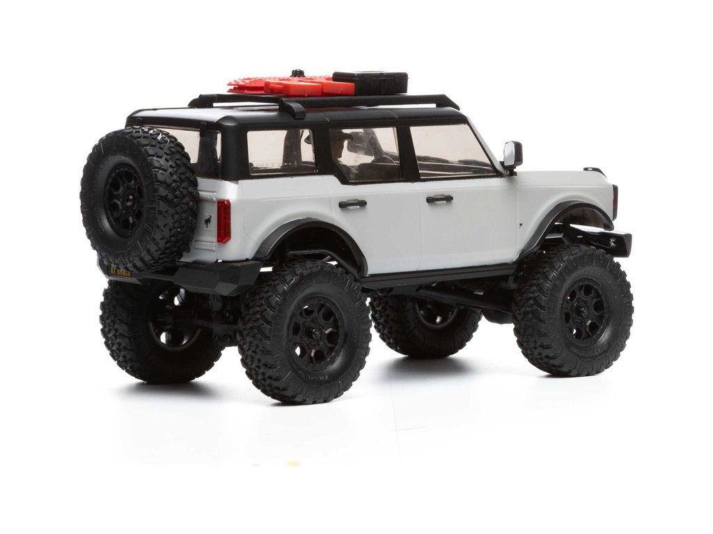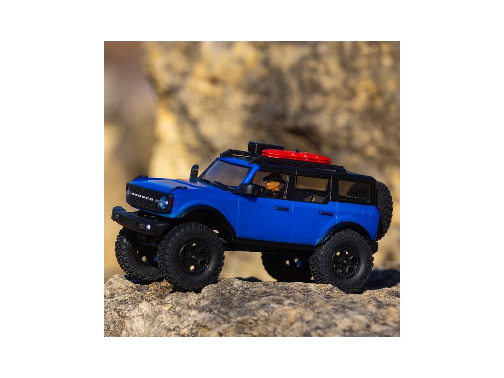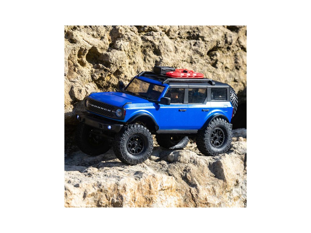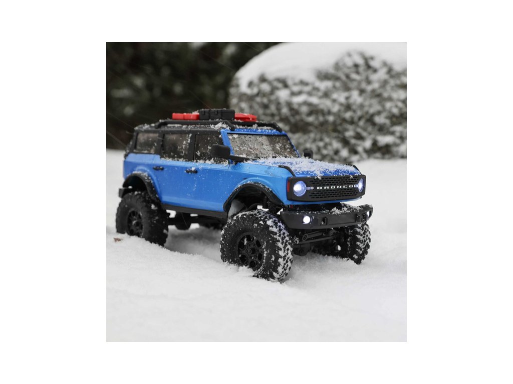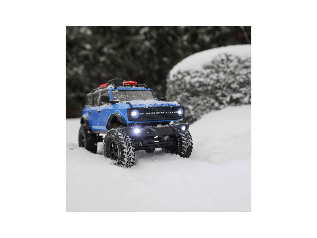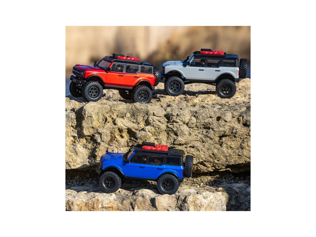 RC model auta na dálkové ovládání v měřítku 1:24 Axial SCX24 s licencovanou karosérií Ford Bronco 2021 a licencovaných pneumatikách Nitto Trail Grappler s disky Factory Ford Wildtrak. Model s pohonem 4x4 je sestaven a připraven k jízdě, vše potřebné je v balení. RC souprava 2,4GHz, motor Dynamite® 88T, LiPol baterie Dynamite 350mAh 7.4V s USB nabíječem. Díky použití moderního LiPo akumulátoru je doba jízdy přes 40 minut!