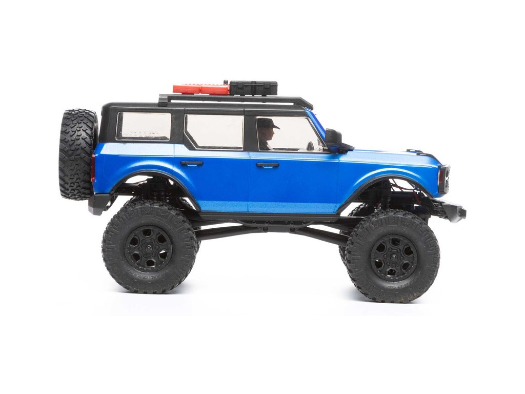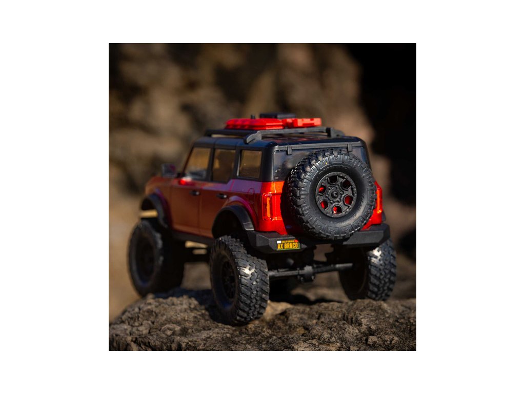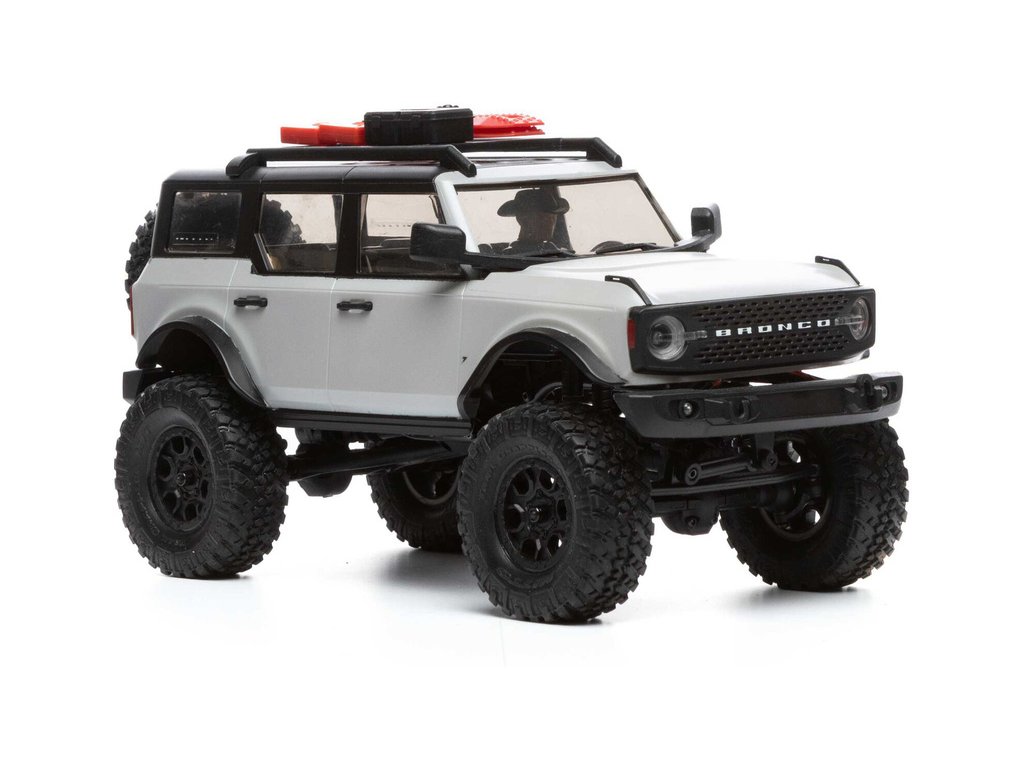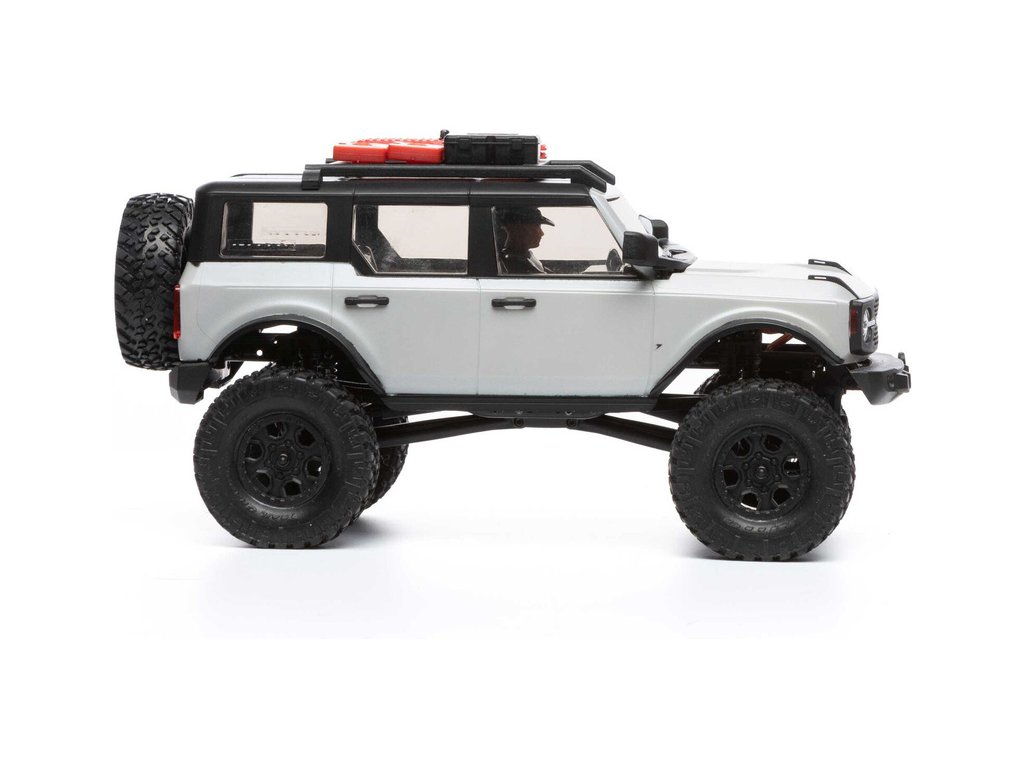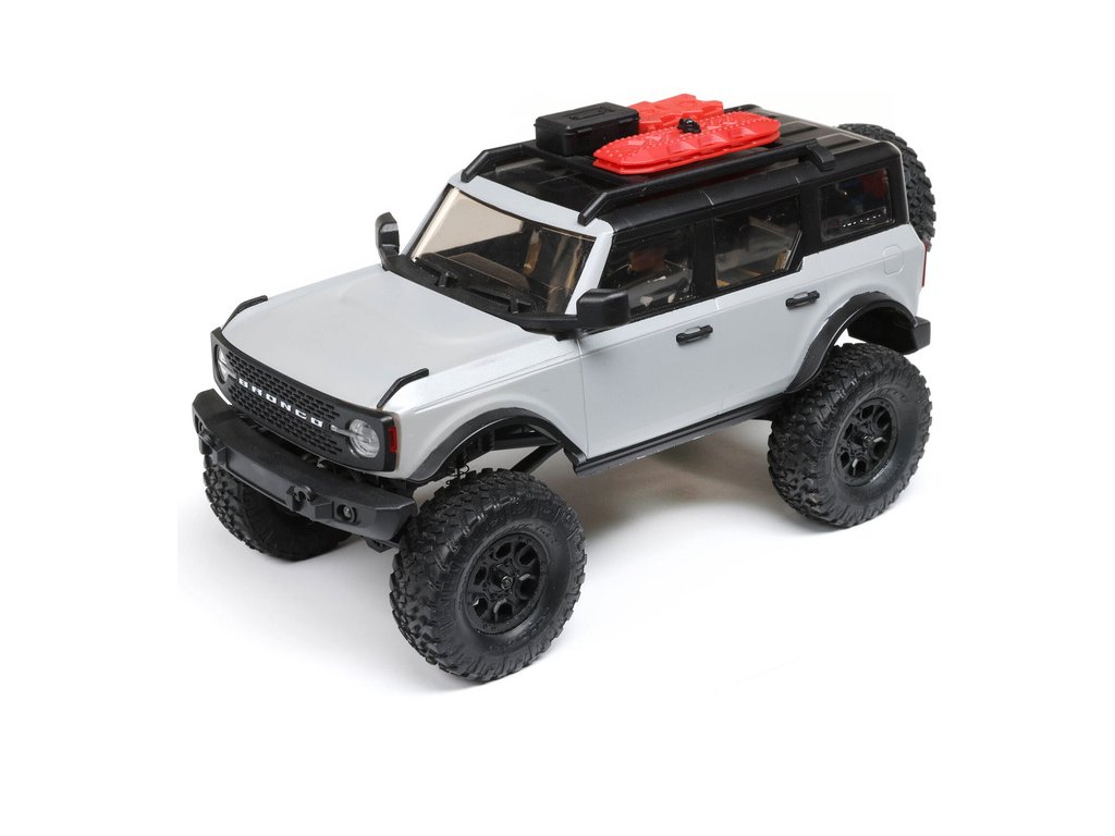 RC model auta na dálkové ovládání v měřítku 1:24 Axial SCX24 s licencovanou karosérií Ford Bronco 2021 a licencovaných pneumatikách Nitto Trail Grappler s disky Factory Ford Wildtrak. Model s pohonem 4x4 je sestaven a připraven k jízdě, vše potřebné je v balení. RC souprava 2,4GHz, motor Dynamite® 88T, LiPol baterie Dynamite 350mAh 7.4V s USB nabíječem. Díky použití moderního LiPo akumulátoru je doba jízdy přes 40 minut!
