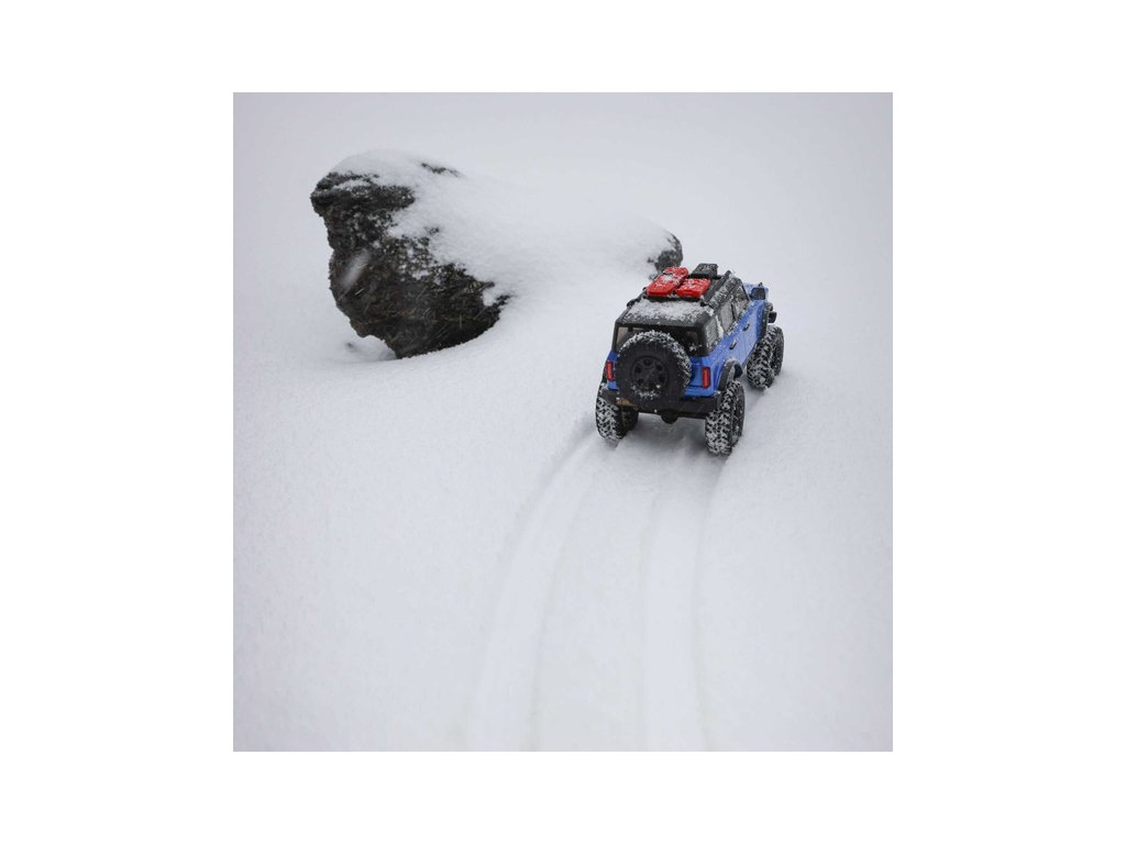 Model přichází s neuvěřitelně detailní licencovanou karoserií Ford Bronco z modelové řady roku 2021. Kromě předního LED osvětlení obsahuje karoserie maketově zpracovanou přední mřížku chladiče, zpětná zrcátka, kliky dveří, zadní rezervní kolo a střešní nosič s příslušenstvím. Pro dokonalý vzhled jsou okna čirá , aby jste moli vidět interiér s figurkou řidiče. Karoserie je vyrobena z odolného ABS materiálu.