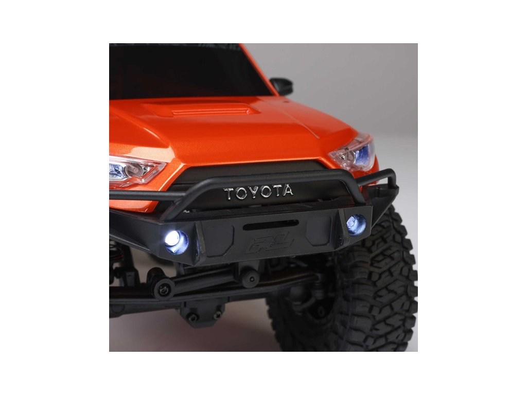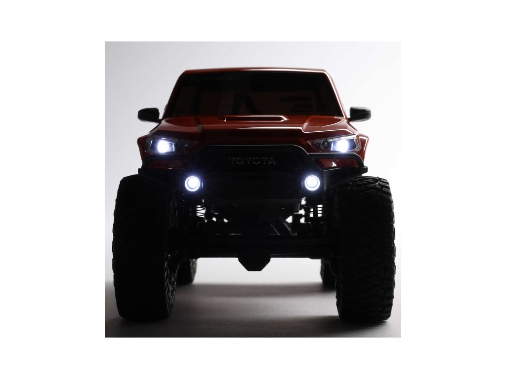 Model je pro jízdu vybaven ocelovými C nosníky podvozku, víceprvkovým zavěšením s ocelovými táhly, přímými pevnými nápravami a olejovými tlumiči. Trvalý pohon všech čtyř kol pohání stejnosměrný motor přes převodovku, středové hřídele a šnekové převody v rozvodovkách. Licencovaná karoserie Toyota z odolného ABS materiálu je doplněna o množství detailů jako jsou zrcátka, kliky dveří a v neposlední řadě předním LED osvětlením pro úžasné večerní projížďky. Licencované jsou rovněž terénní pneumatiky Toyo Open Country R/T na kolech Pro-Line Mini Impulse Black Bead-Loc.