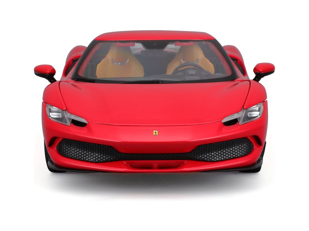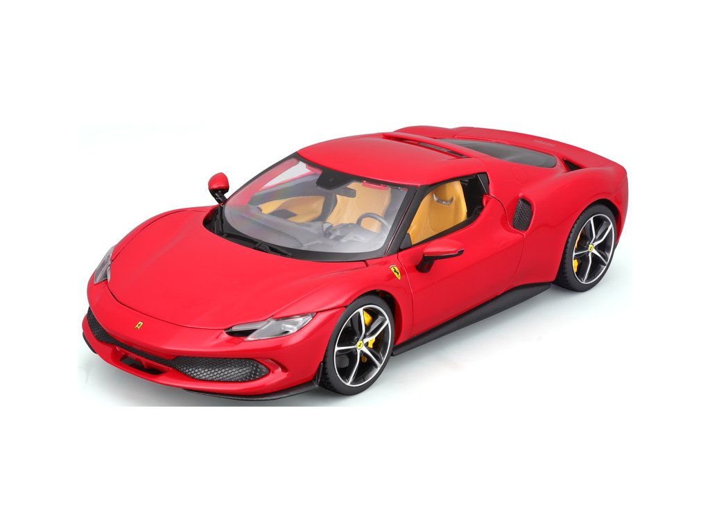 Kovový model auta 1:18 Bburago 18-16018RD Ferrari 296 GTB, nejen pro sběratele. Model je v detailním provedení. Barva modelu je červená a přibližně 24 cm velký.