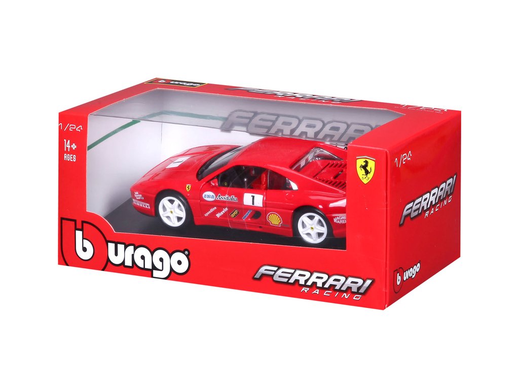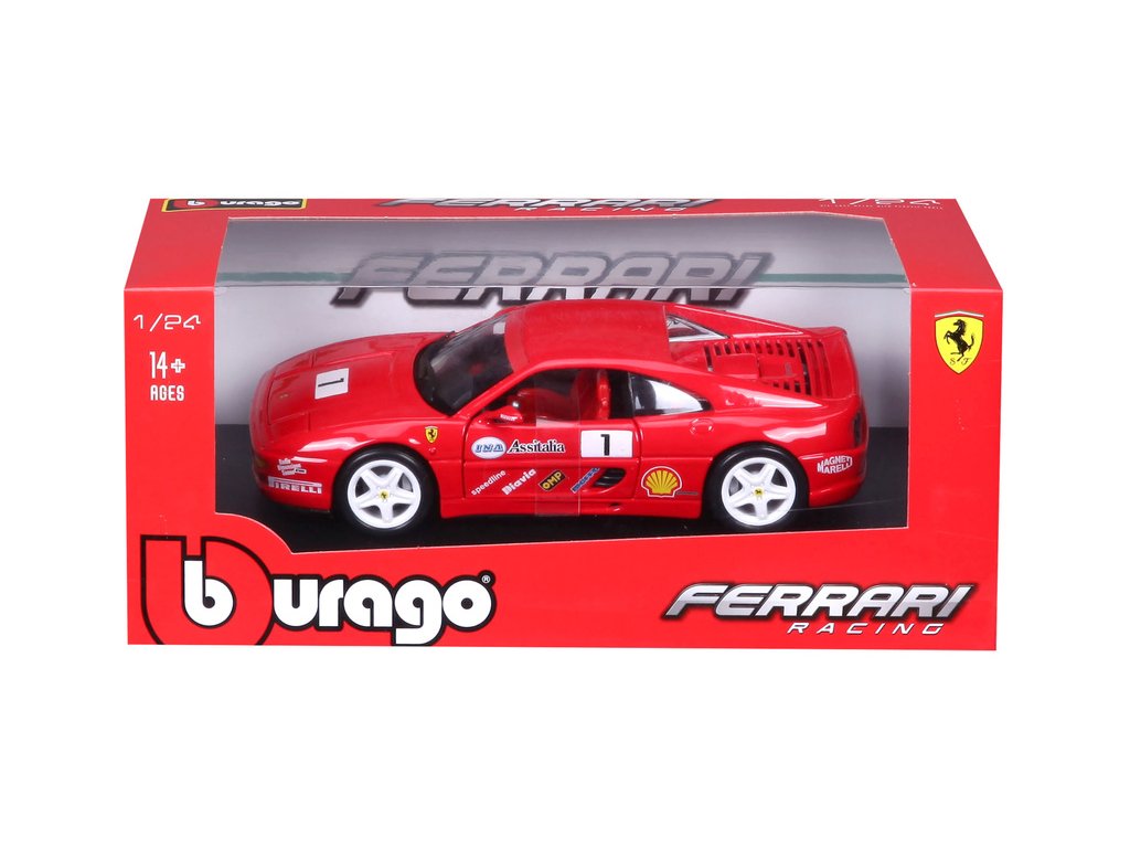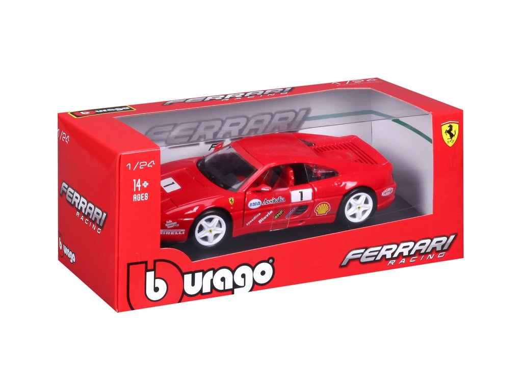 Kovový model auta 1:24 Bburago 18-26306, Ferrari Racing F355 Challenge, nejen pro sběratele. Má otevírací dveře a je v detailním provedení. Barva modelu je červená.