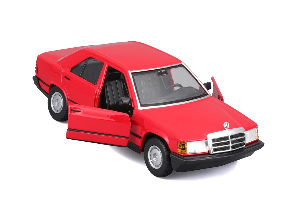 Kovový model Bburago Mercedes-Benz 190E 1987 nejen pro sběratele. Detailní provedení, přívětivá cena, barva červená.