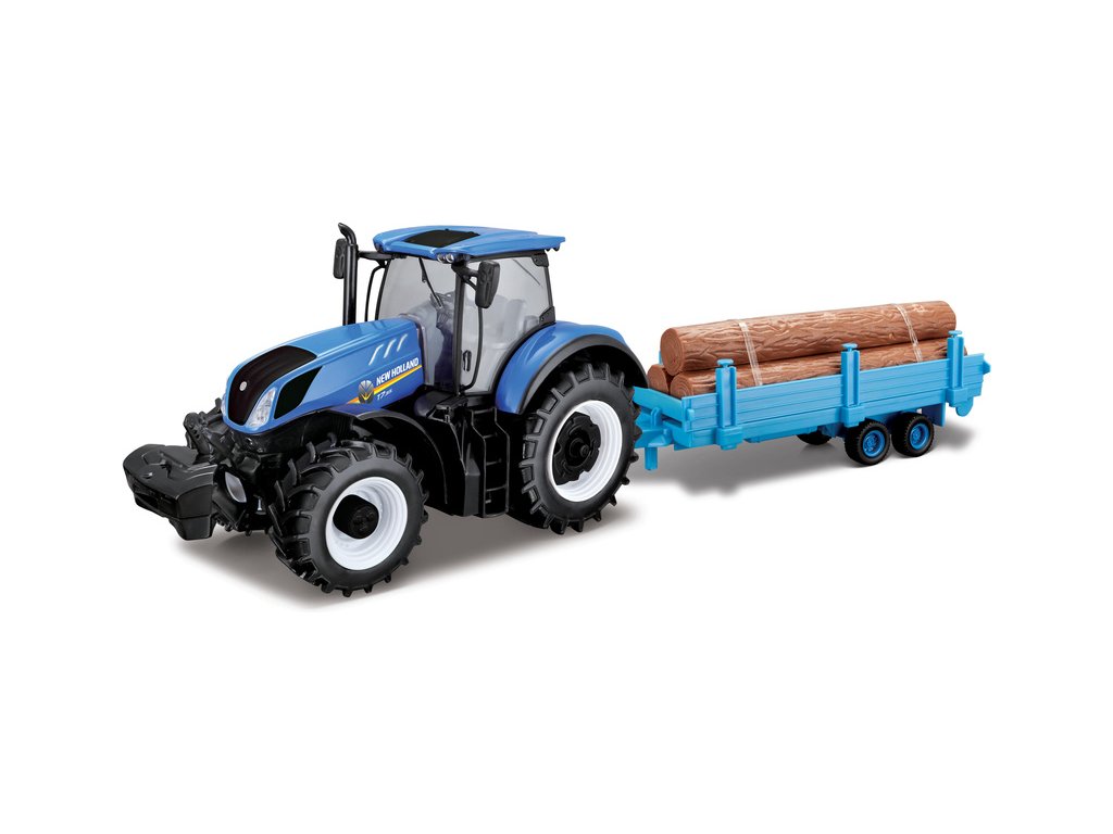 Model Bburago 18-44068 - traktor New Holland T7.315 s vlečkou dřeva v měřítku 1:32 je vyrobený z kovových a plastových dílů. Model traktoru má odjímatelnou kabinu a je v detailním provedení. Na zadní závěs se připojí vlečka plná dřeva. Traktor je přibližně 17 cm velký, vlečka je přibližně 16 cm velká.