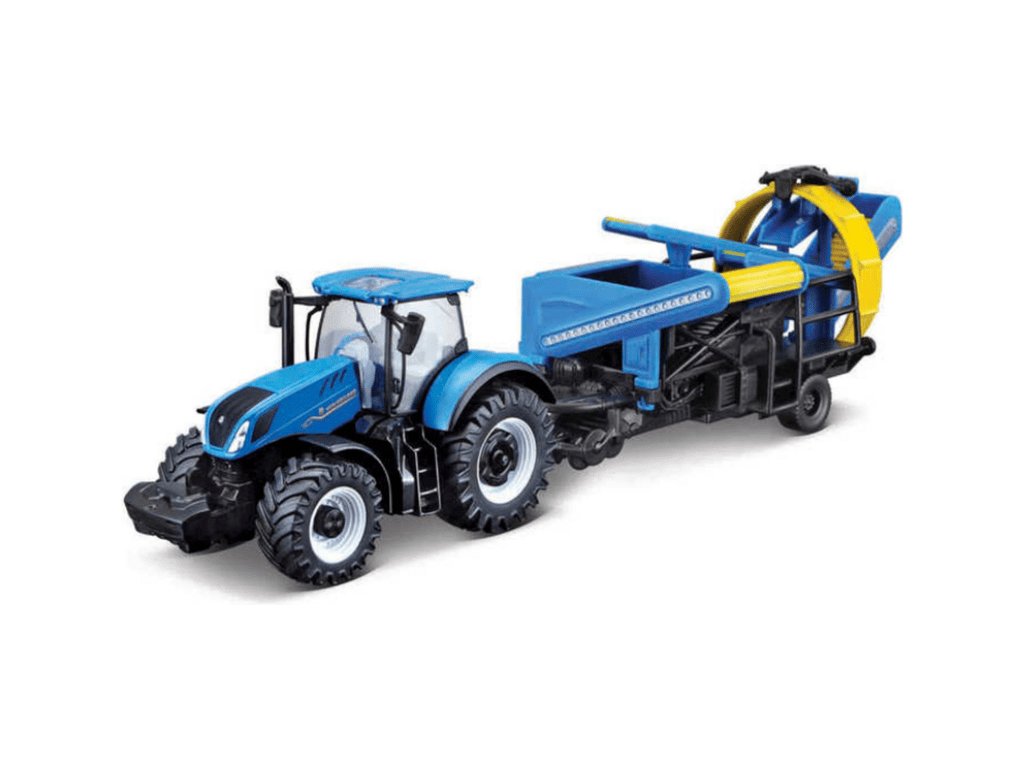 Model Bburago 18-31678 - traktor New Holland T7.315 s přívěsem je vyrobený z kovových a plastových dílů. Model traktoru má detailní provedení. Na zadní závěs se připojí kultivátor. Traktor je přibližně 10 cm velký.