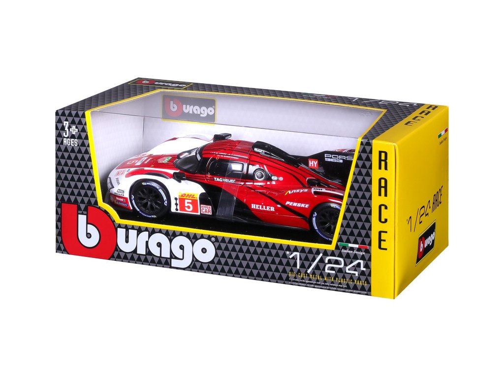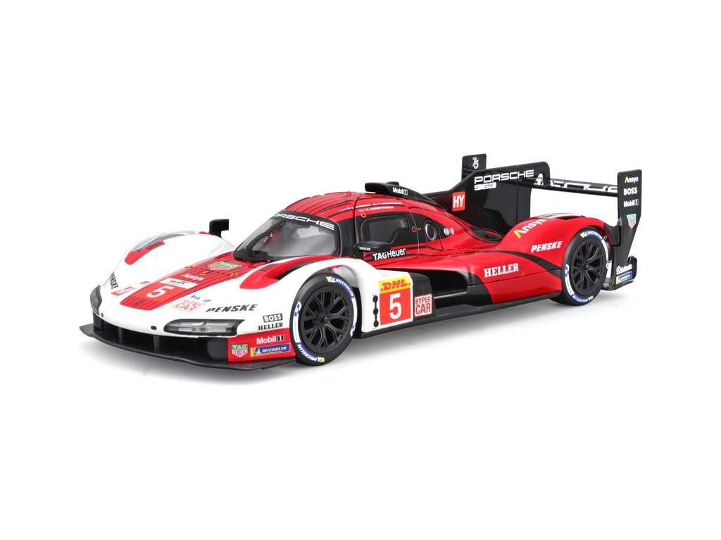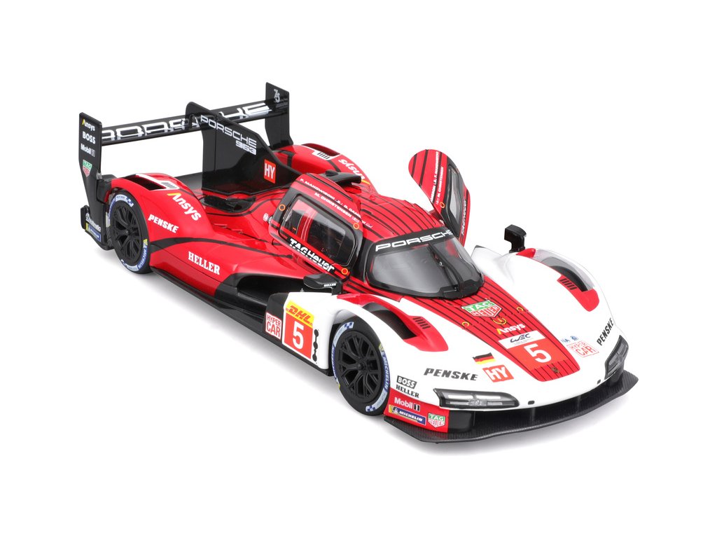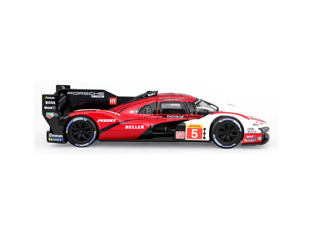 Kovový model auta 1:24 Bburago 18-28022 Porsche 963 nejen pro sběratele. Má otevírací dveře, barva modelu je #5 a je přibližně 19 cm velký.