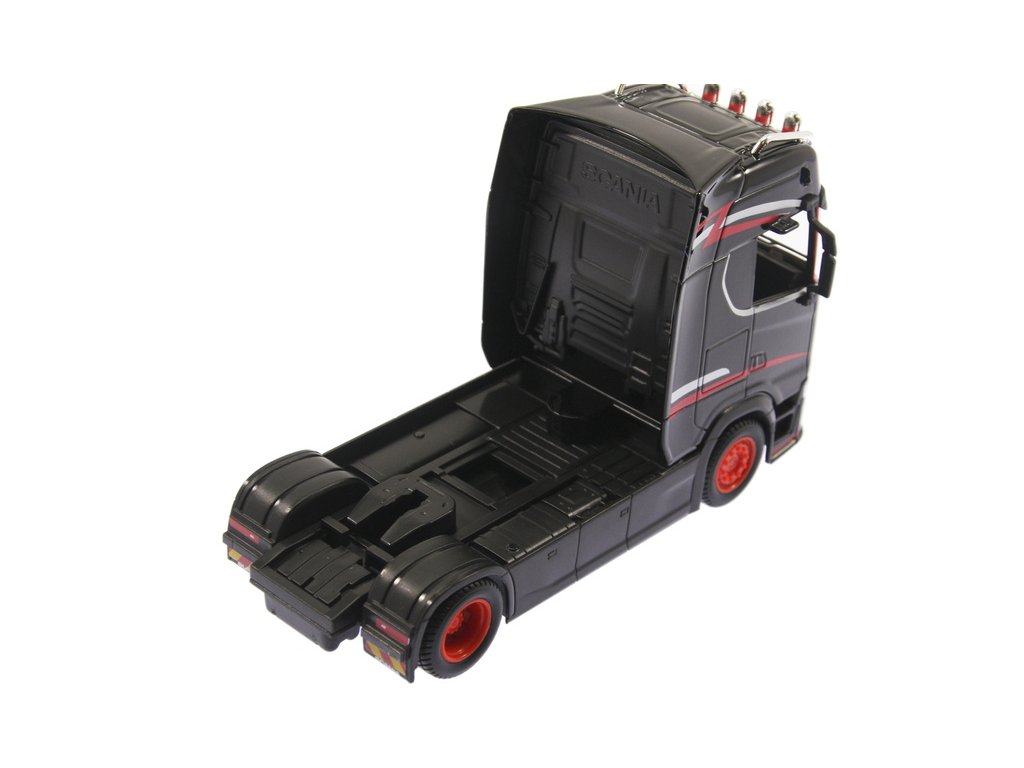 Kovový model Bburago 18-32207 - Scania 770S v měřítku 1:43. Je vyroben z kovových a plastových dílů v detailním zpracování. Scania je přibližně 15 cm velký a můžete k němu připojit návěs. Barva modelu je šedá.