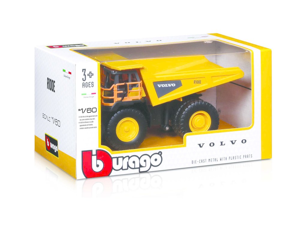 Model sklápěcího vozu Volvo R100E v měřítku 1:60. Je vyroben z kovových a plastových dílů. Detailní zpracování. Model v charakteristické žluté barvě je přibližně 15 cm velký.