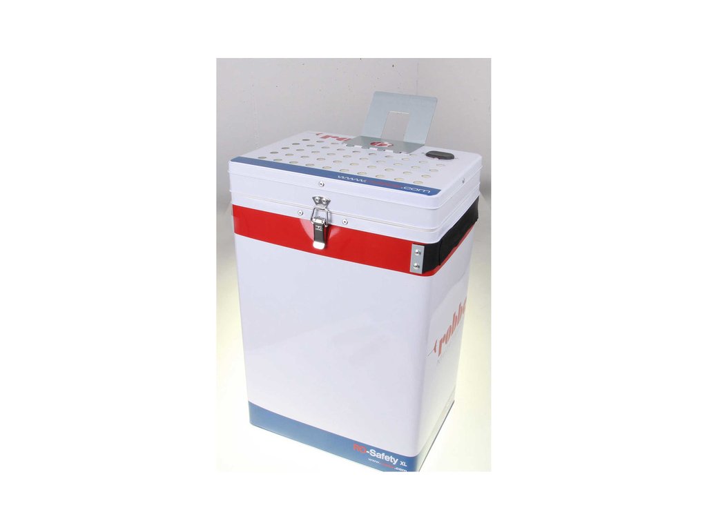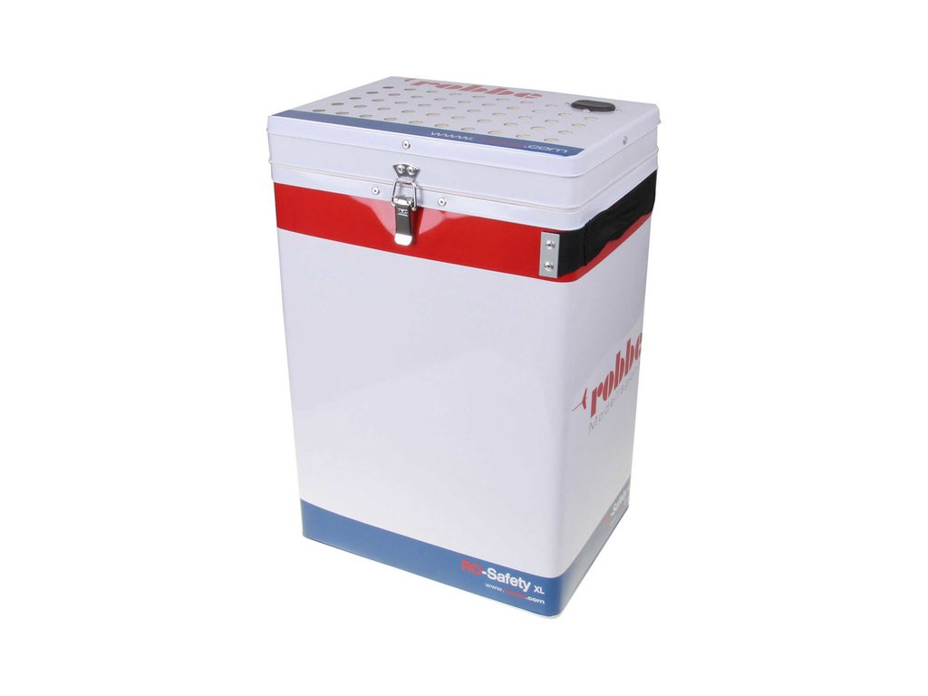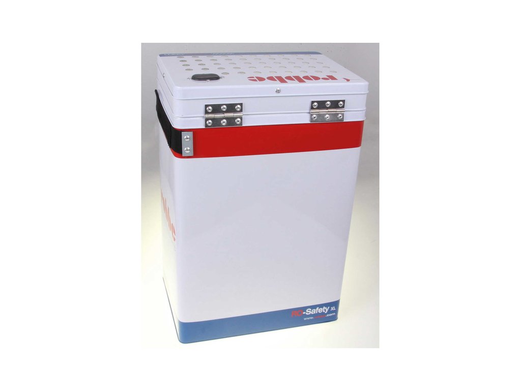 Bezpečnostní kovový kufr je určen k minimalizování rizika spojeného s nabíjením a uskladněním akumulátorů. Bezpečností nehořlavé průchodky umožňují vstup nabíjecích kabelů do kufru. V případě požáru baterií může výsledný tlak uvnitř uniknout ven skrz bezpečnostní horními ventilačními otvory, zároveň se kouř filtruje, aby se žádné škodlivé látky neuvolňovaly ven. Uvnitř kovového kufru může dojít k požáru až 800 °C. Díky speciální izolaci se podlaha a stěny boxu ohřejí maximálně na 80 °C. Unikající plyn se nezahřeje na více než 150 °C.