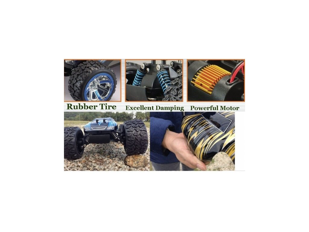 má odjimatelnou karoserii, každé kolo je samostatně zavěšno na nezávislých tlumičích a osazenou měkkou pneumatikou. Dálkové ovládání je pistolové, je potřeba do něj zakoupit 3xAA baterii.