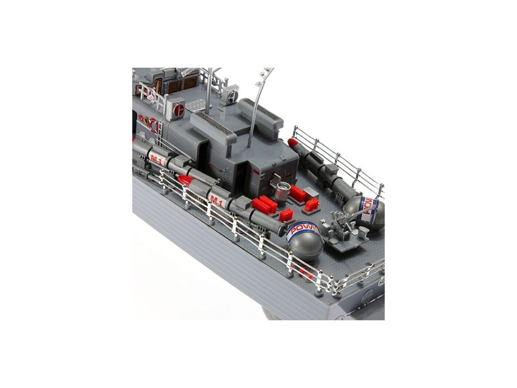 Primární úlohou tohoto torpédoborce je rychlý útok na nepřátelské válečné lodě a námořní i protivzdušná obrana válečných a transportních lodí, které doprovází. Tato skvěle propracovaná replika na dálkové ovládání lodi je vyrobena z odolných materiálů s důrazem na ty nejmenší detaily a podrobnosti, včetně makety vrtulníku. Model vypadá dobře nejen na poličce, ale může se také aktivně podílet na operacích na vodě. Loď je možné ovládat ve všech směrech: dopředu, dozadu, doleva, doprava. Po připojení baterie se rozsvítí radarová věž. Loď má zabudovanou bezpečnostní funkci, která zabraňuje náhodnému spuštění motorů. Navíc je loď velmi odolná a kvalitně zpracovaná.