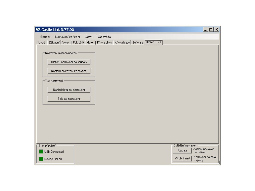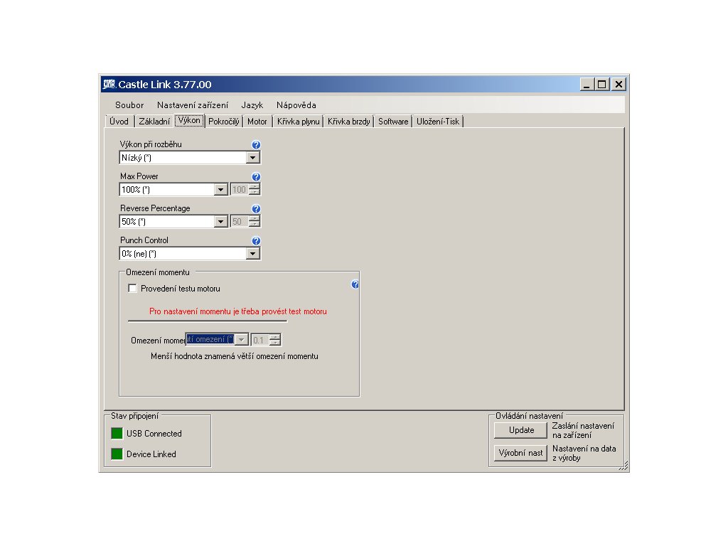 - Pokročilé nastavení pomocí programovací karty, USB programátoru nebo Bluetooth programátoru a aplikace Castle Link (programátory se prodávají zvlášť).