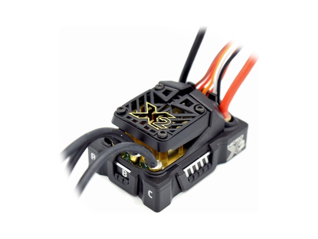 Elektronika regulátoru je usazena do robustního těla a zalita voděodolným epoxidem. Tento systém minimalizuje riziko vniknutí vody k elektronice a podporuje efektivní přenos tepla. Regulátor je dále vybaven zlacenými konektory pro zapojení motoru, LED indikací a vypínačem s pryžovou krytkou (proti vnikání nečistot). Vstupní kabely napájení jsou pocínované, záleží na Vás jaký konektor máte v modelu.