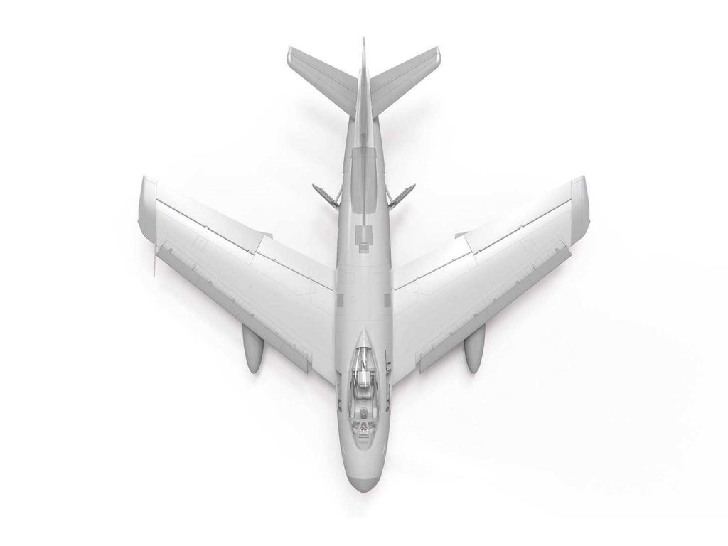 Jeden z nejdůležitějších letounů rané éry proudových letadel North American F-86 Sabre představoval v mnoha ohledech proudovou verzi velmi úspěšného letounu P-51D Mustang z druhé světové války, přičemž při jeho vývoji byly zároveň plně využity ukořistěné německé materiály z aerodynamického výzkumu. Měl charakteristické šípové křídlo se sklonem 35 stupňů a také trojici kulometů ráže 12,7 mm na obou stranách přídě. Tento proudový stíhač zároveň sdílel mnoho konstrukčních prvků se svým slavným předchůdcem s pístovým motorem. V době, kdy v roce 1949 vstoupil do služby u amerického letectva, se North American F-86 Sabre mohl pochlubit nejen tím, že se stal prvním americkým stíhacím letounem s šípovým křídlem, ale také nejrychlejším stíhacím letounem na světě své doby, je tedy skutečnou leteckou klasikou.