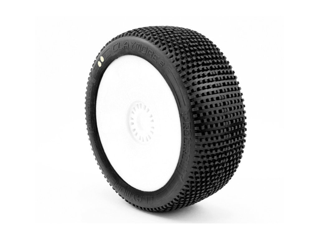 CLAYMORE V2 BUGGY S1 (SUPER SOFT) nalepené pneumatiky, bílé disky, 2 ks.