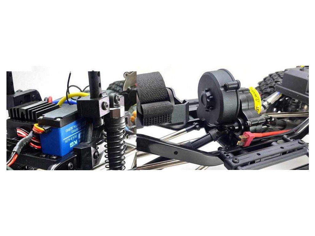 RTR set obsahuje stejnosměrný motor velikosti 540, vodotěsný regulátor Hobbywing a 15kg servo s kovovými převody. 2,4GHz rádio dostalo také aktualizaci.