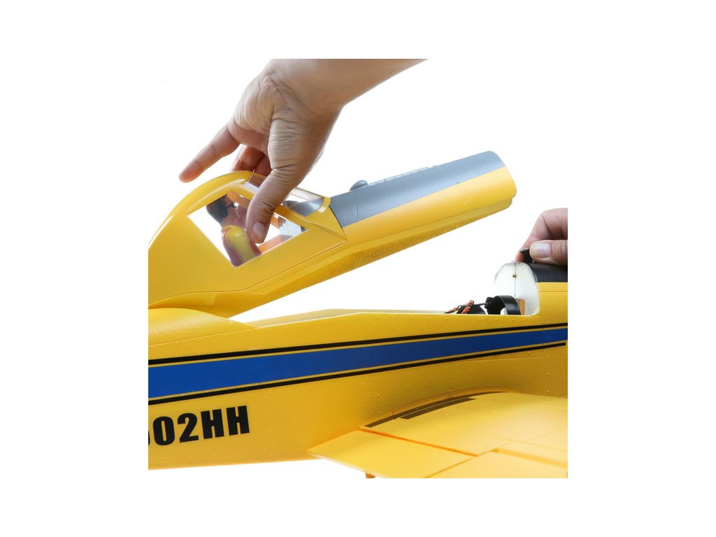 Přístup k baterii je možný po sundání krytu trupu, jehož součástí je kabina. Proto je výměna baterie velmi snadná a pohodlná. Nainstalovaný přijímač Spektrum™ AR637TA má konektory pro připojení senzorů telemetrie, můžete například dokoupit volitelný senzor napětí SPMA9570A (2-pinový) a mít k dispozici napětí pohonné baterie v reálném čase.