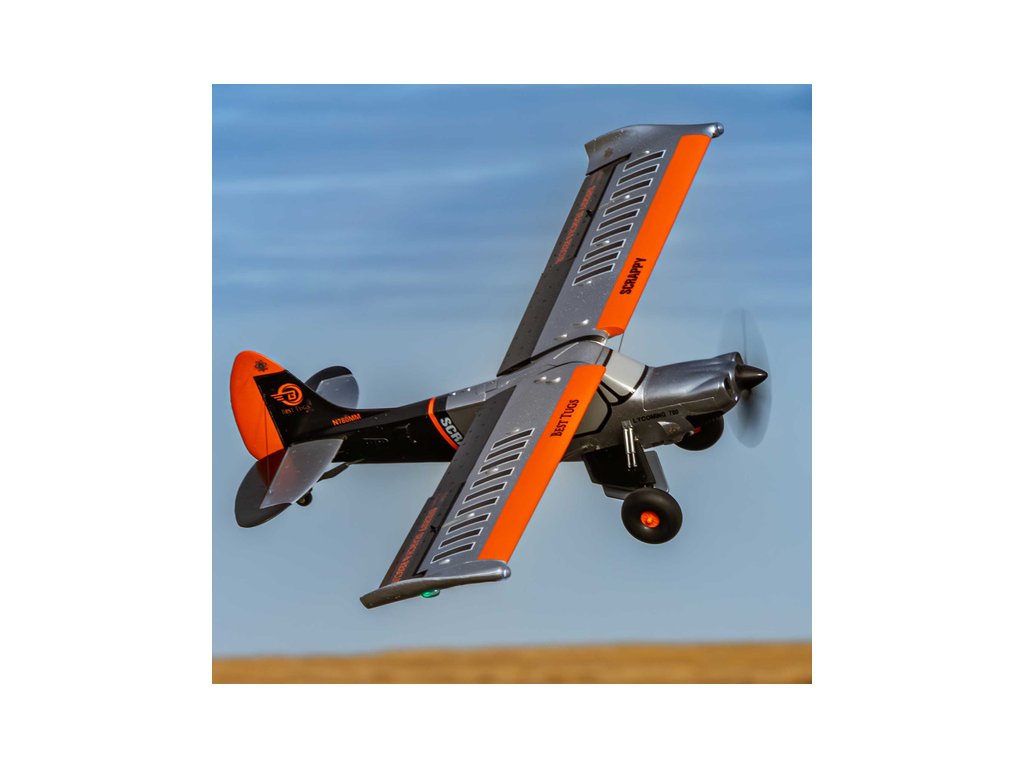 RC model letadla E-flite Micro Scrappy s rozpětím 0.8m je licencovanou replikou letounu známého pilota a konstruktéra Mike Pateyho. Stejně jako originál i model obsahuje vlastnosti STOL (vzlet a přistání na krátké dráze), odpružený podvozek s velkými měkkými pneumatikami ve stylu Tundra, vztlakové klapky, řiditelnou ostruhu a atraktivní LED osvětlení. Výkonný střídavý motor se speciální 4listou vrtulí umožňuje napájení 3S nebo 4S LiPo akumulátorem. To zajišťuje pohodové i sportovnější akrobatické létání pro mírně pokročilé a pokročilé piloty. Tato verze BNF Basic je vybavena přijímačem Spektrum s vylepšenou technologií AS3X+, která ještě lépe stabilizuje let za větru a v turbulenci, a také volitelným systémem SAFE Select pro snadnější a bezpečnější ovládání.